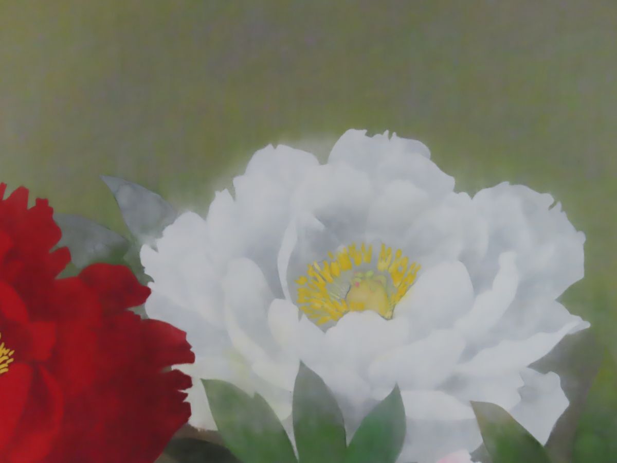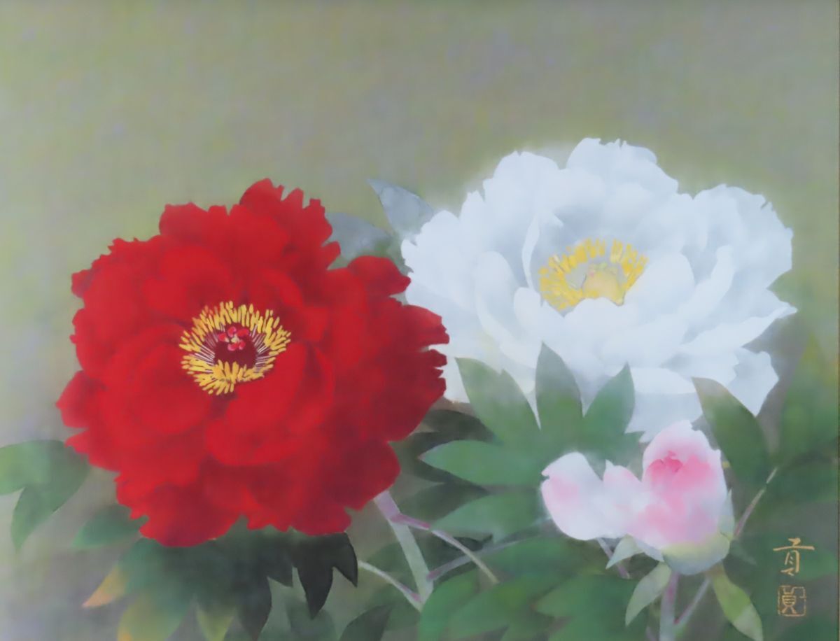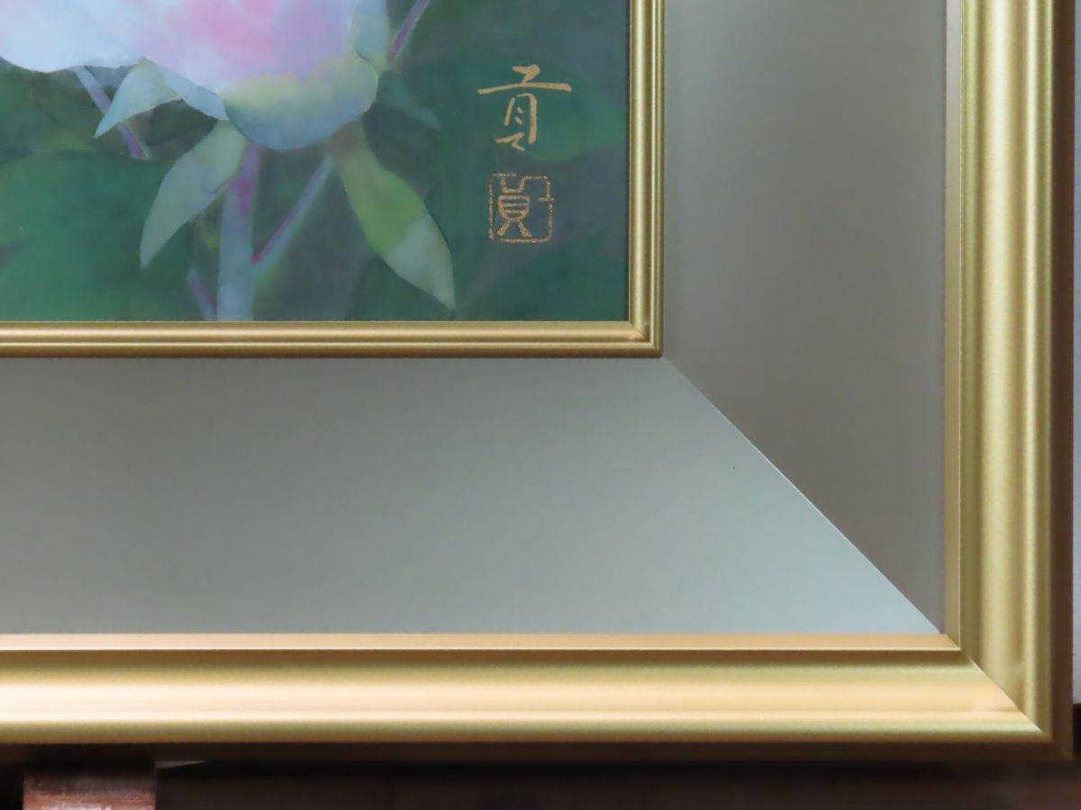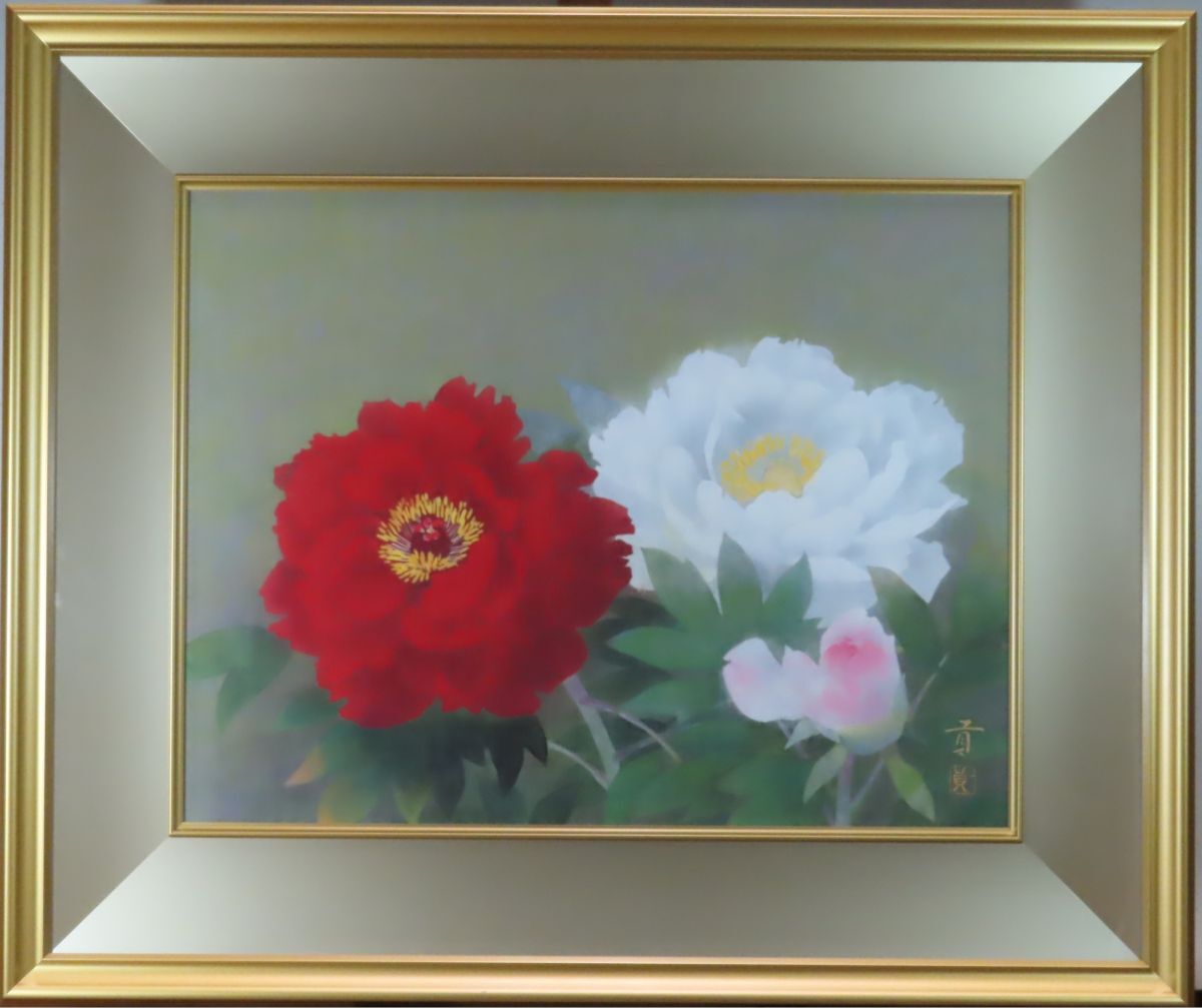 ☆見飽きることのない美しい画面が、静かに、いつまでも、残像をとどめます。 奥村 土牛、塩出 英雄などの大家に師事し、日本画壇の王道を歩んみ、味わい深い逸品。 小品で絶妙な色使いなど生花以上にみずみずしく生き生きとした美しさを 凝縮した淡い発色の広がりは画伯の技量の高さをみごとに見せいてます。本格的な日本画用高級額に入っています。 出品作品は全て真作を保証しております☆