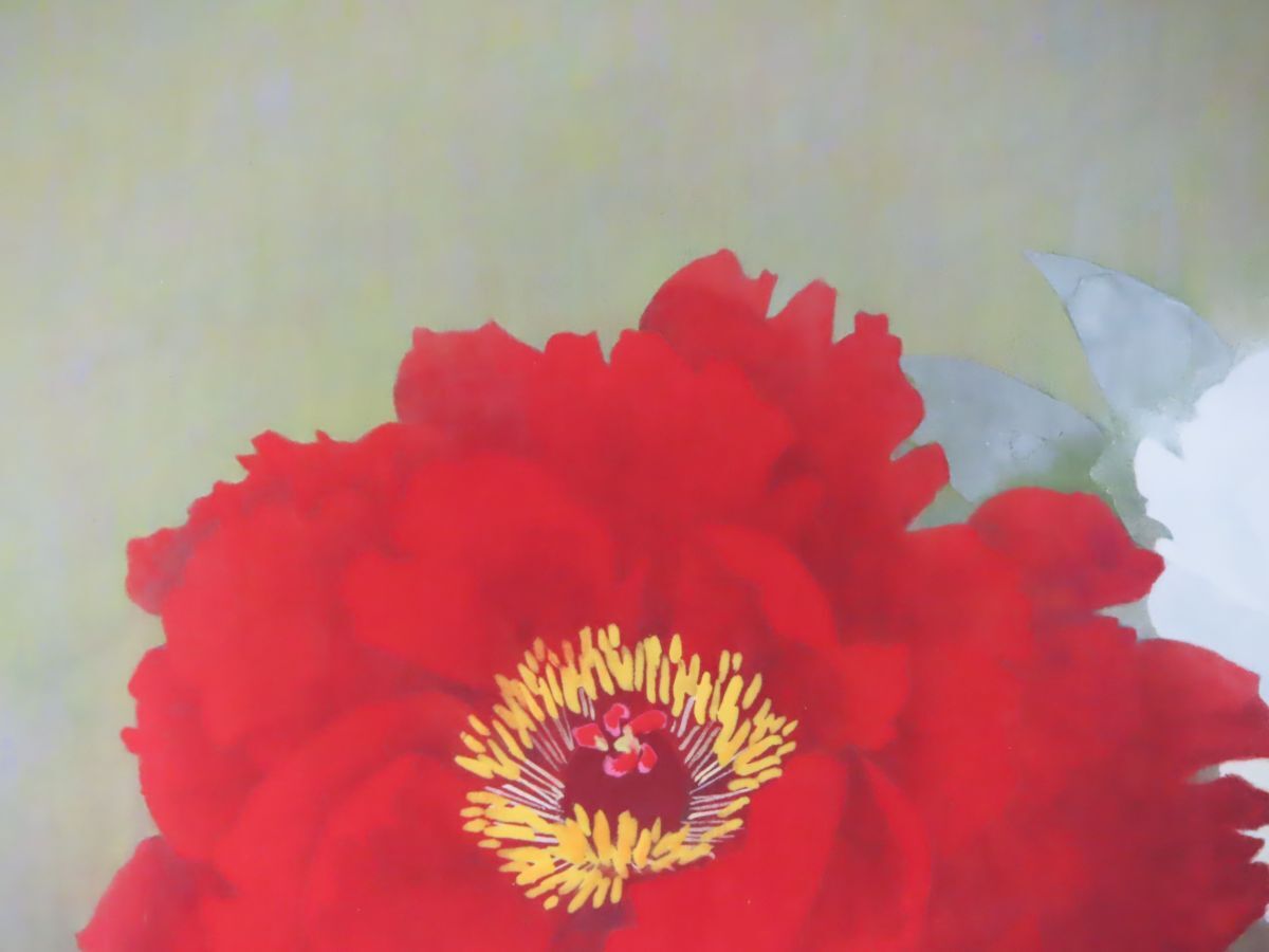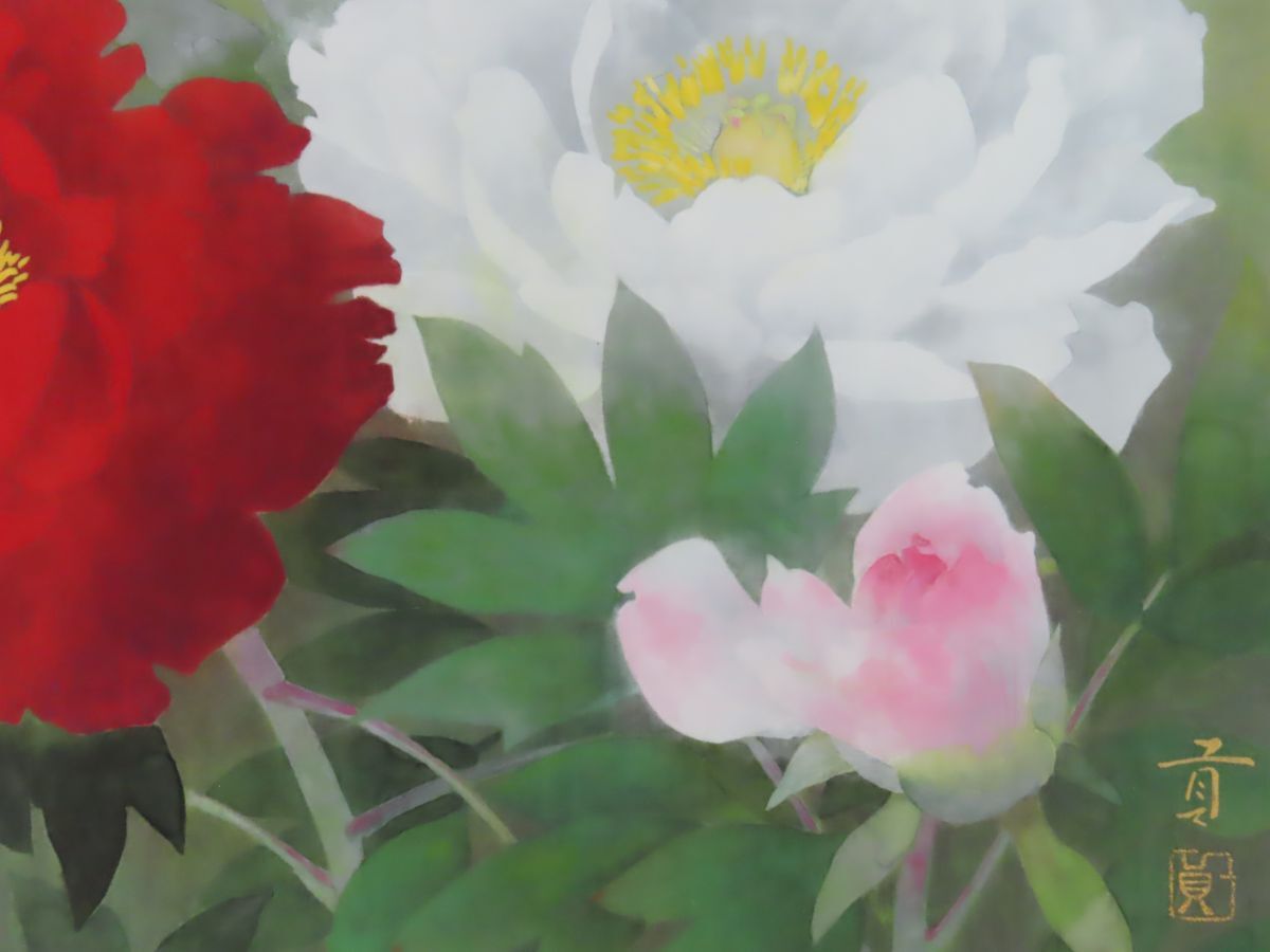 穂高「真作」日本美術院院友 下村 貢 「牡 丹」 日本画 10号 共シール 福島
