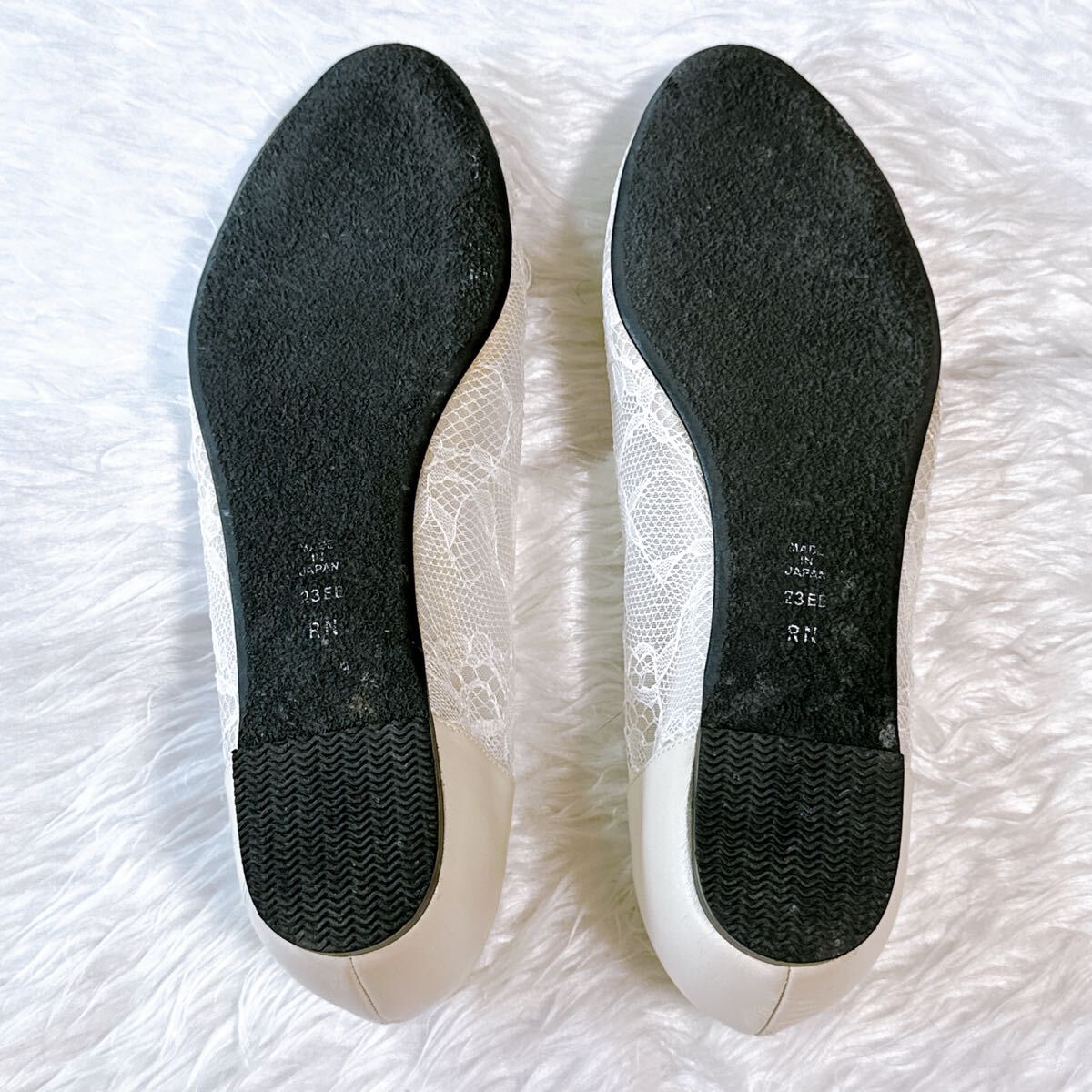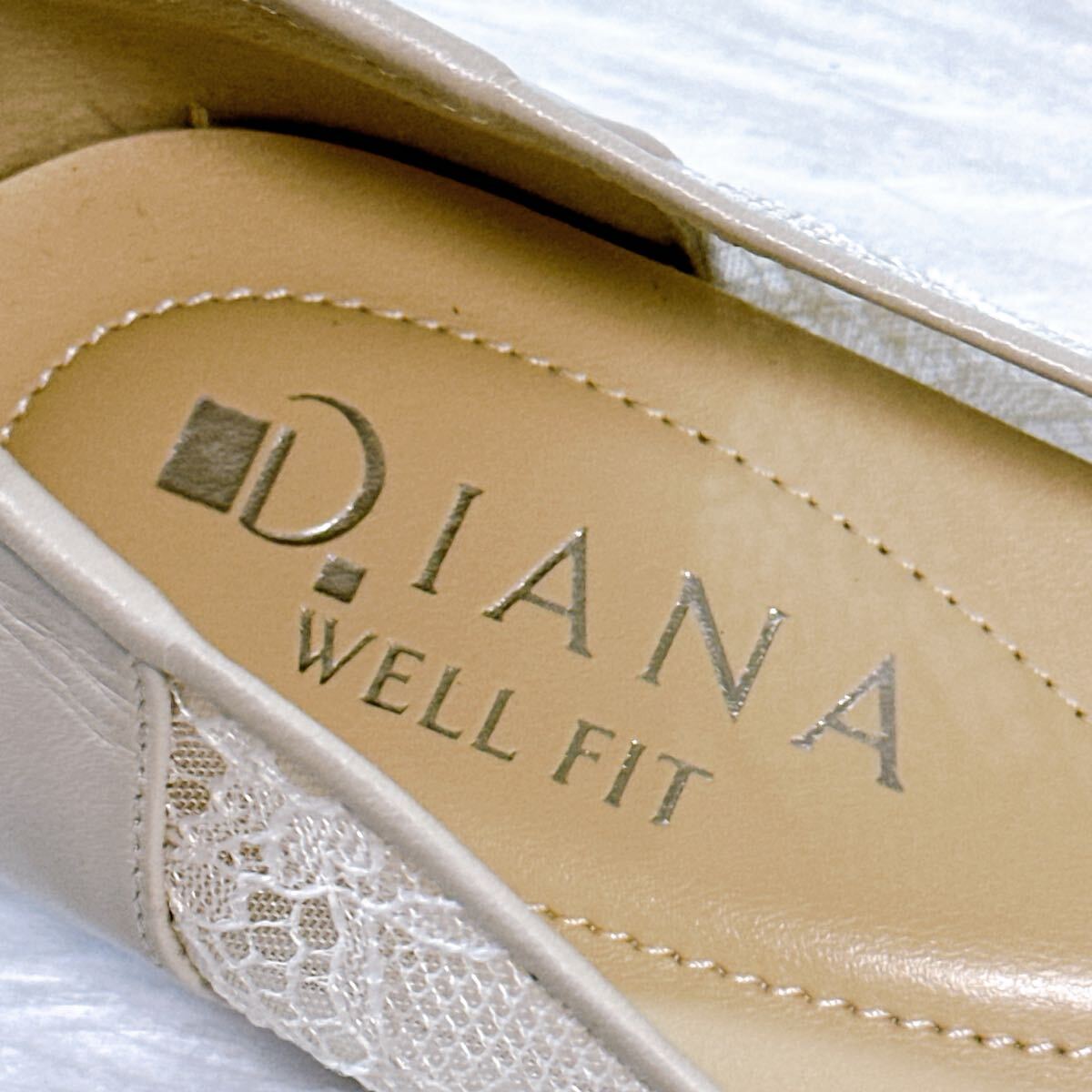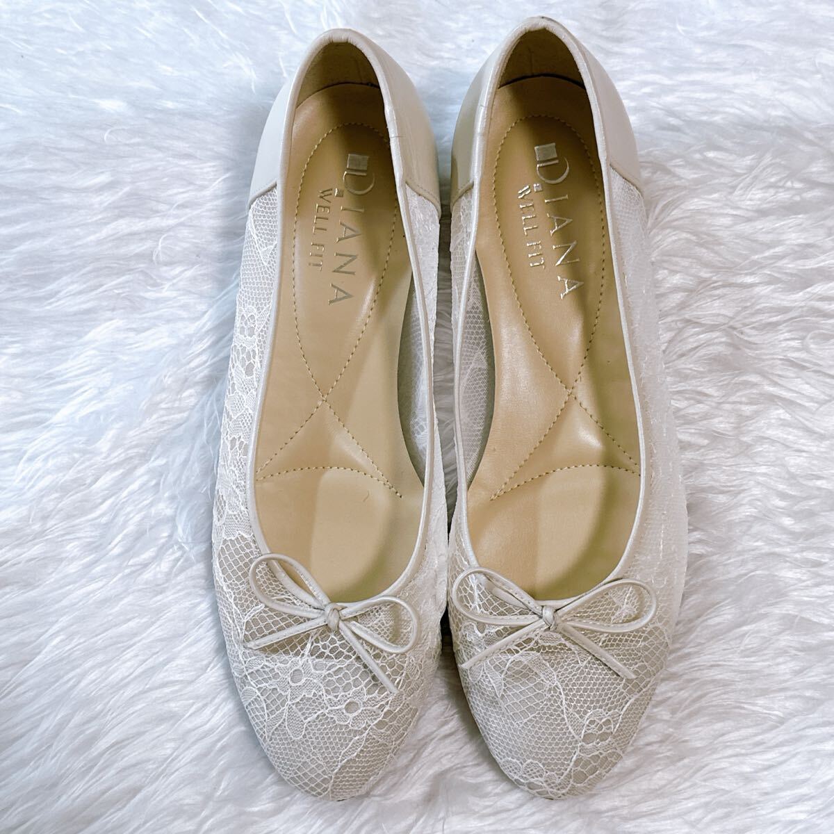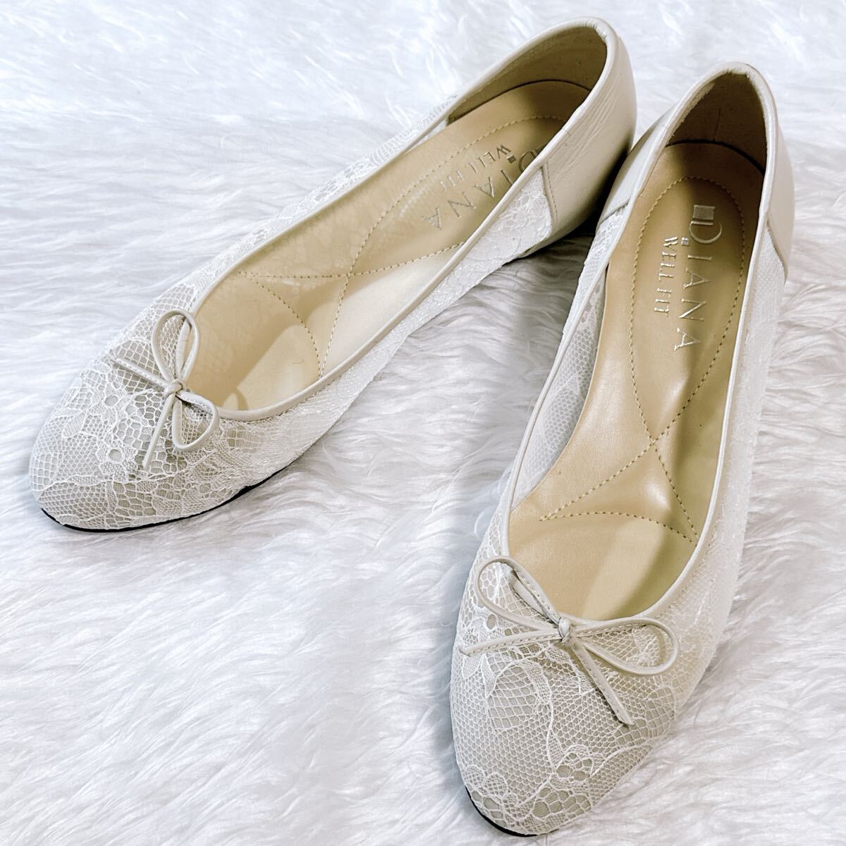 美品 DIANA WELLFIT ダイアナ ウェルフィット フラットパンプス レース 23cm コンフォート 通勤 通学 フォーマル オフィス アイボリー メッシュ