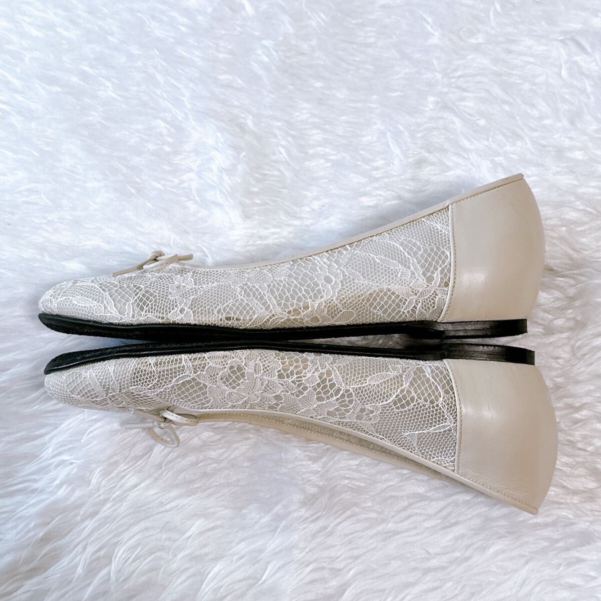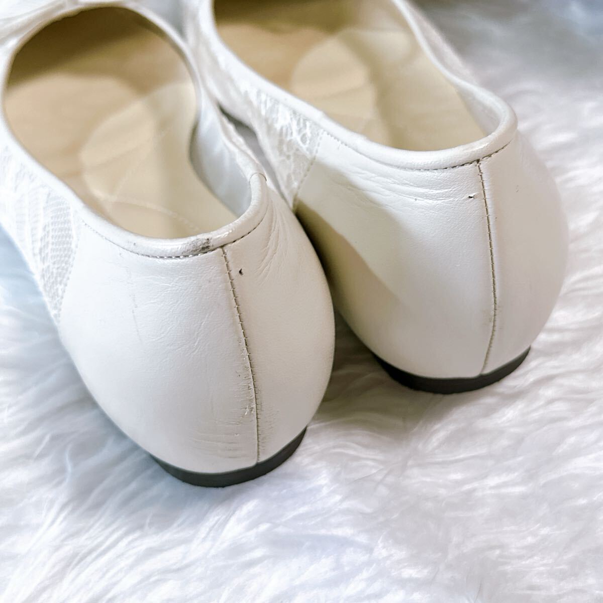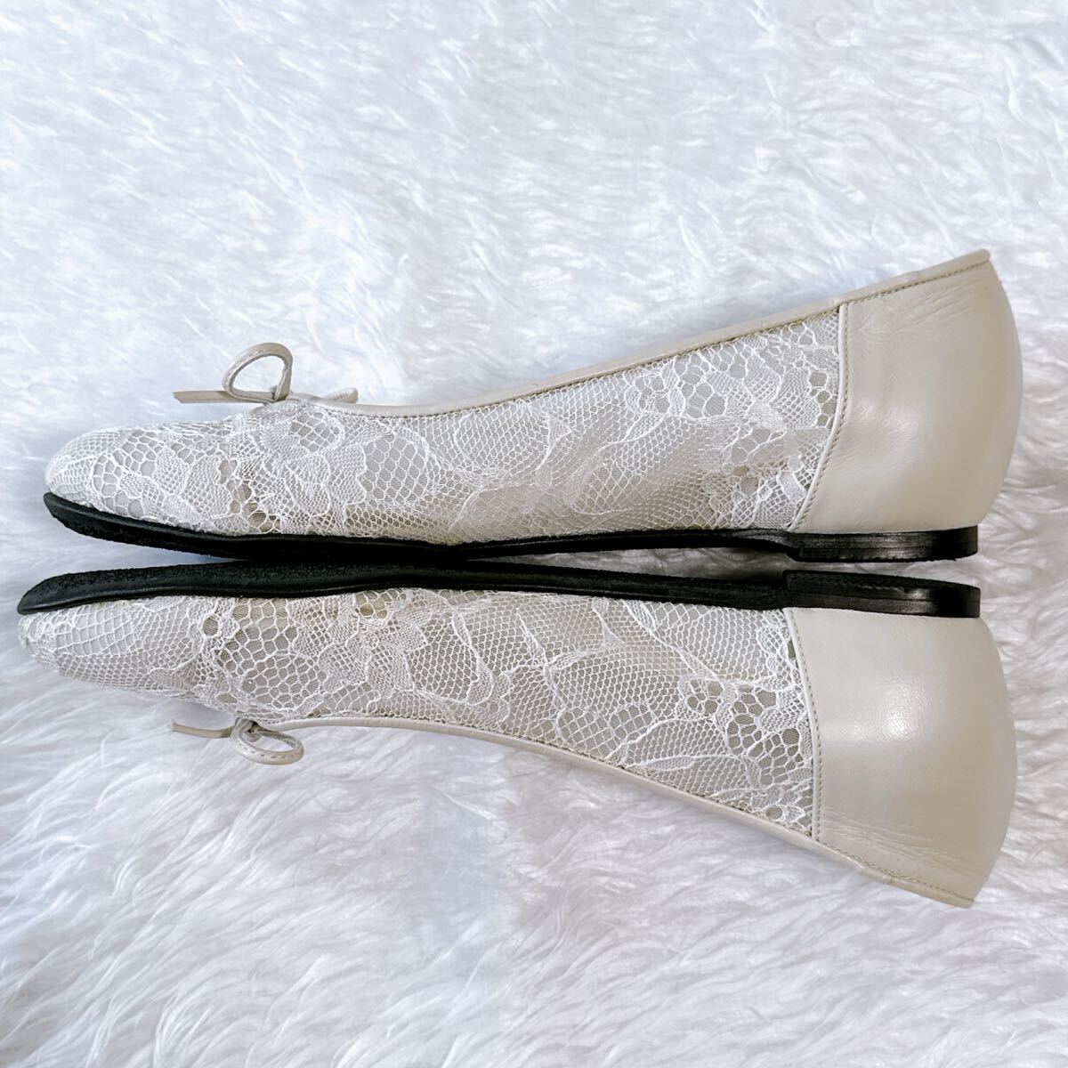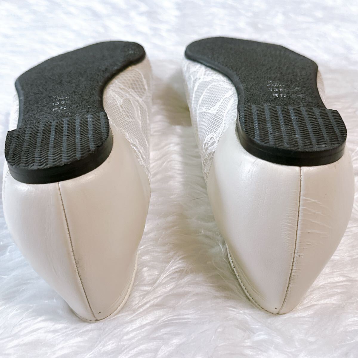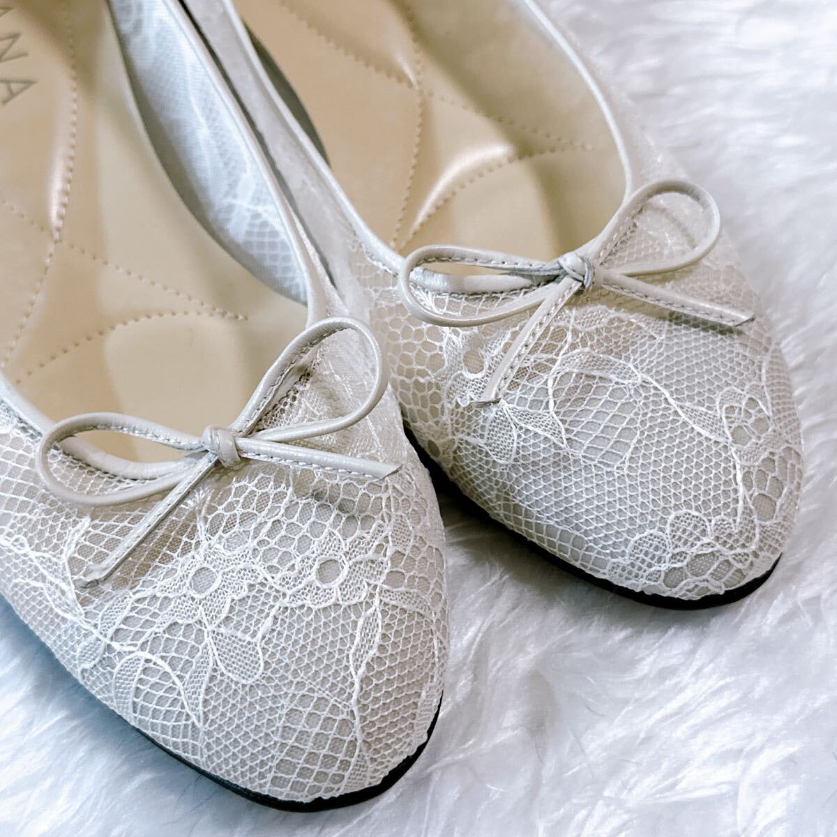 美品 DIANA WELLFIT ダイアナ ウェルフィット フラットパンプス レース 23cm コンフォート 通勤 通学 フォーマル オフィス アイボリー メッシュ