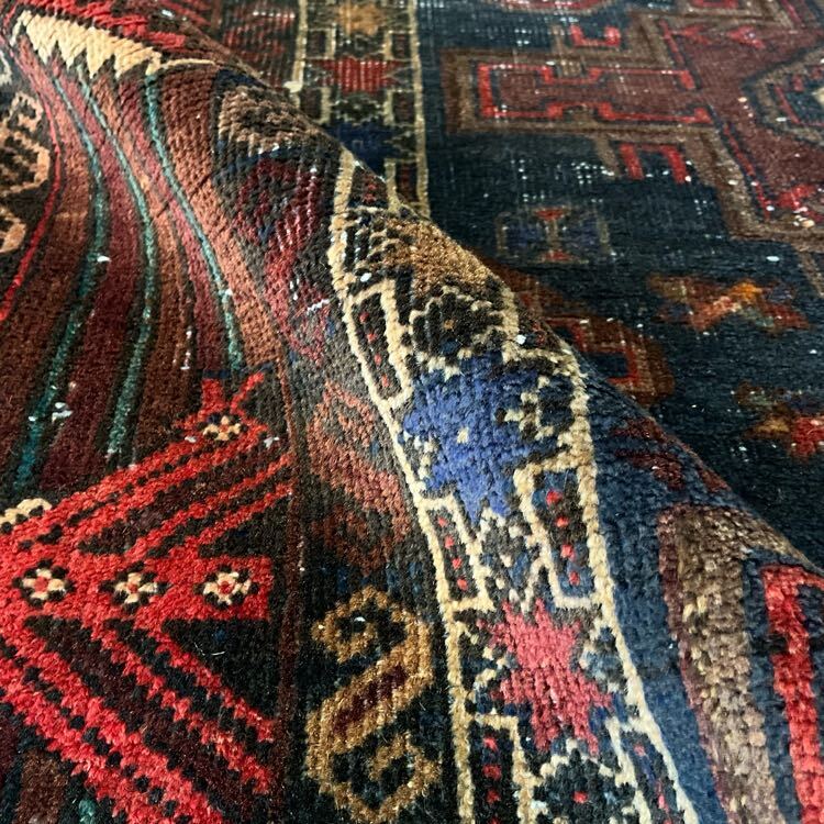 ★職人の手仕事★全体的に美しい擦れが広がっております。手織りの味わいを感じるしなやかで丈夫な織り、キリムエンドの丁寧な仕上げ、アンティーク家具とも相性の良い深い色味、職人の手仕事を感じる緻密な織り柄が全体に並ぶオススメのヴィンテージ絨毯です。(画像をご確認下さい。)
