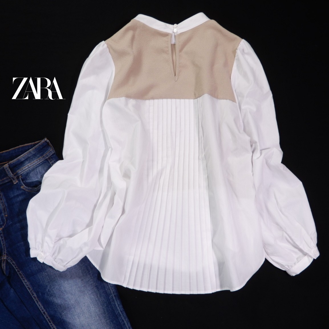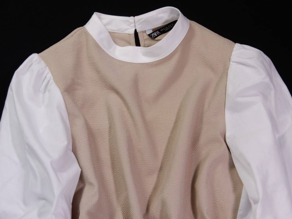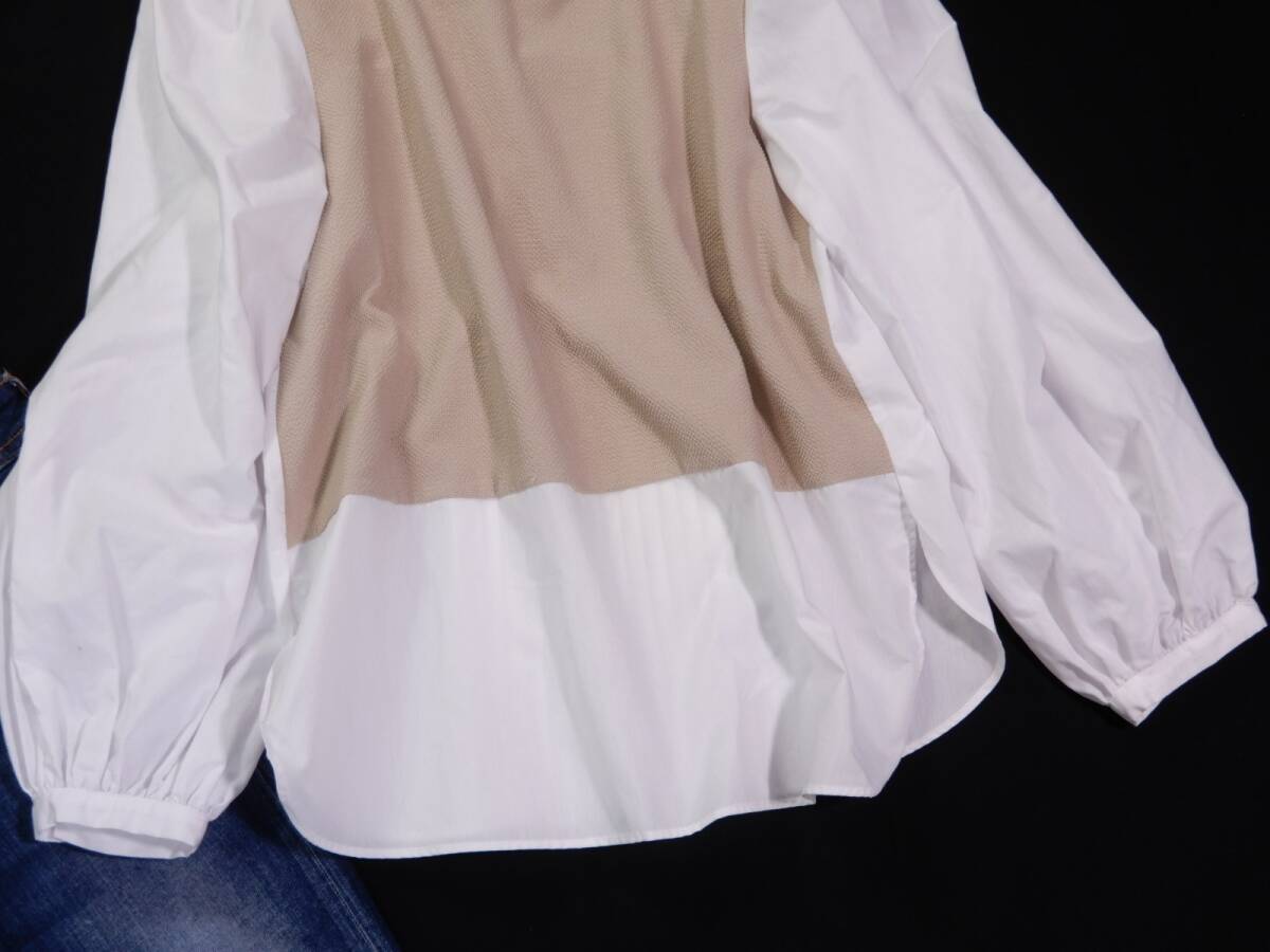 ザラ ZARA 大人可愛い☆ 異素材切り替え 異素材ドッキング バックプリーツデザイン プルオーバー ブラウス S