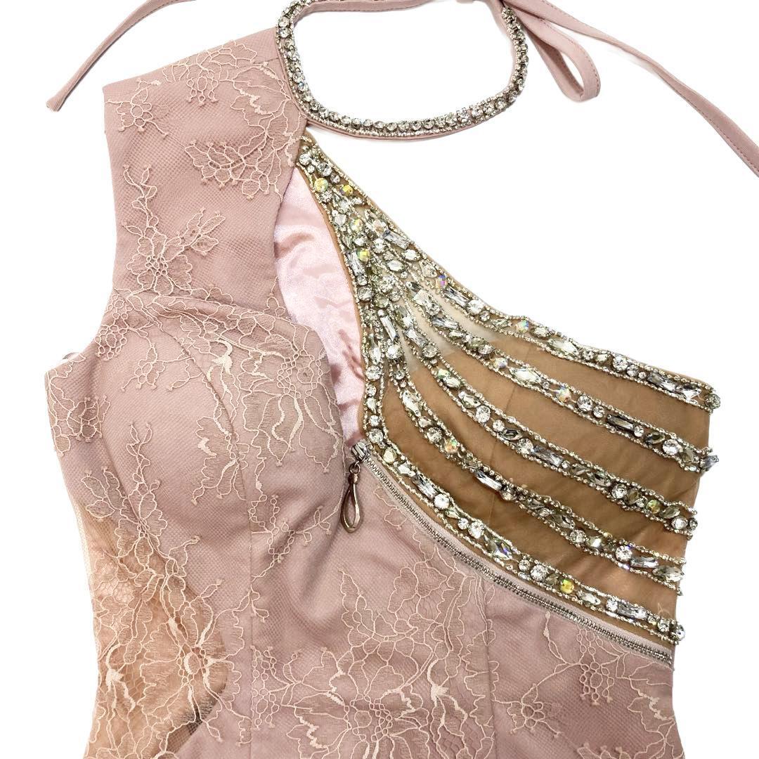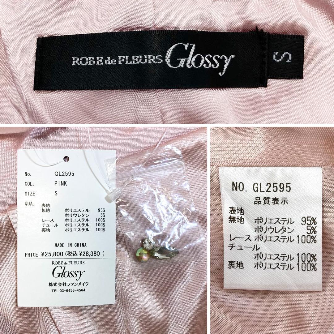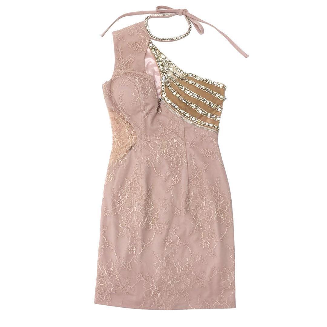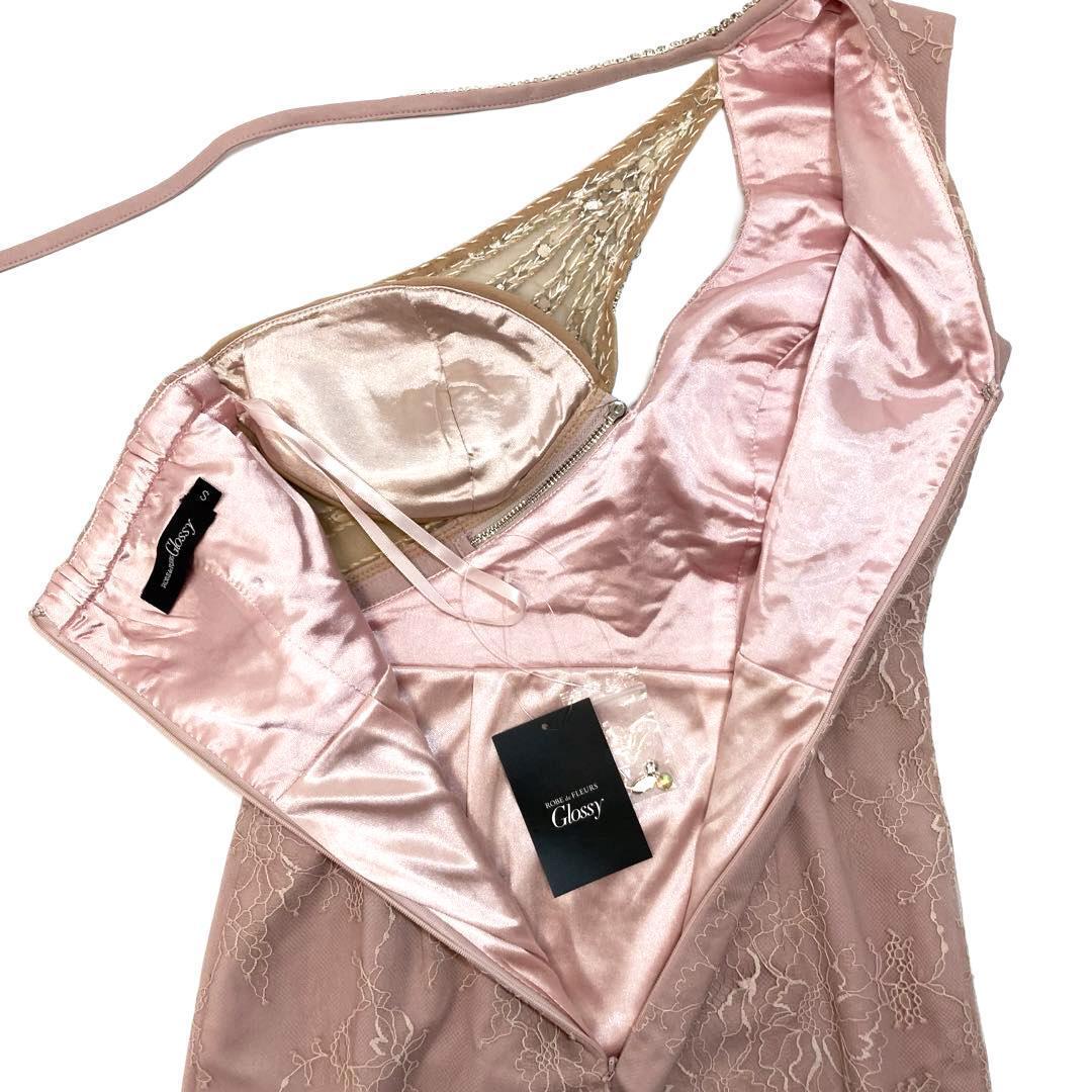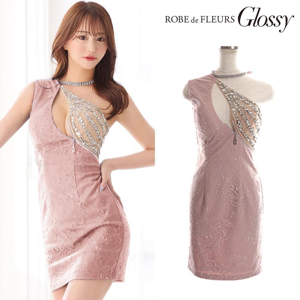 ROBE de FLEURS Glossy ローブドフルールグロッシー アシンメトリービジューxジッパーストレッチタイトキャバドレス ピンク