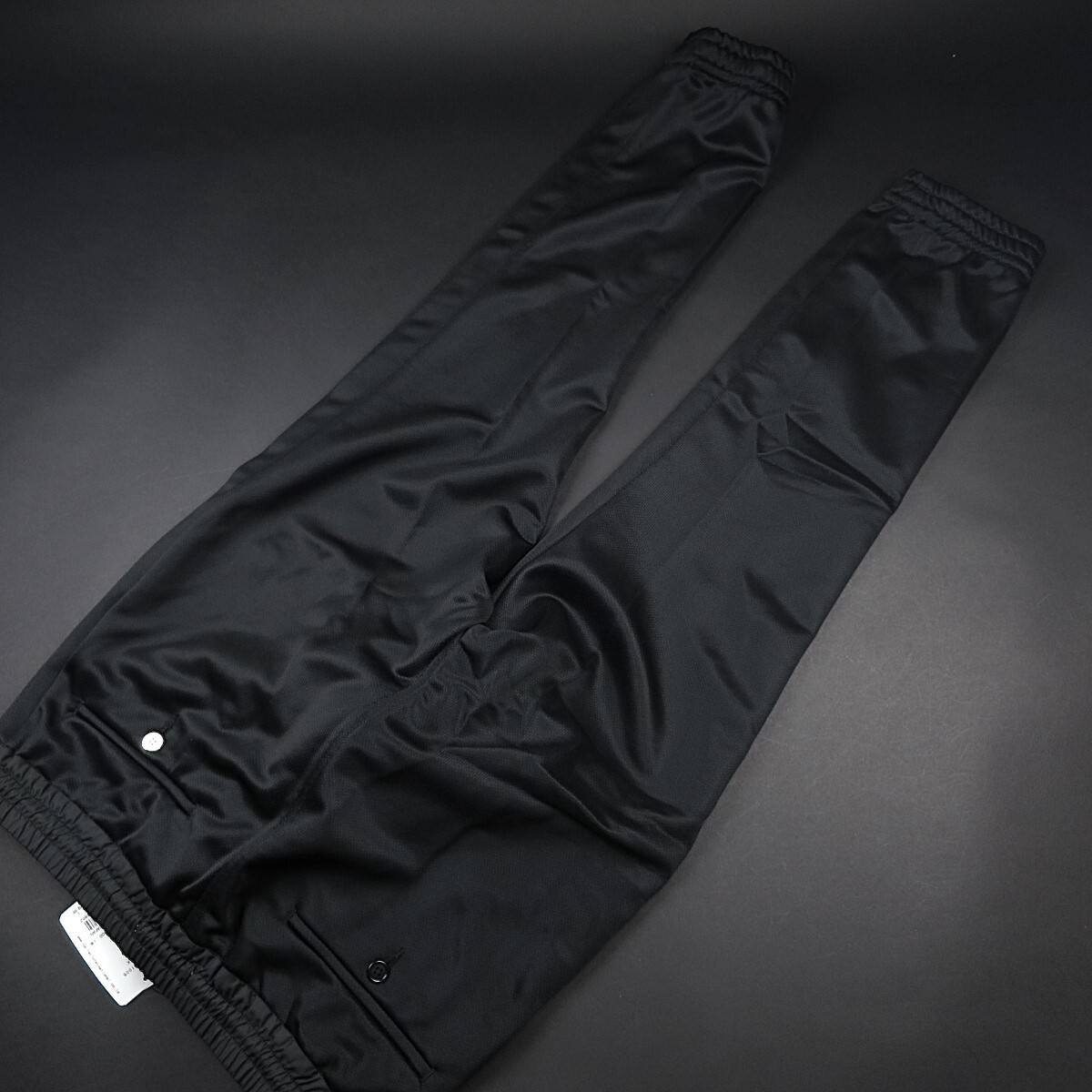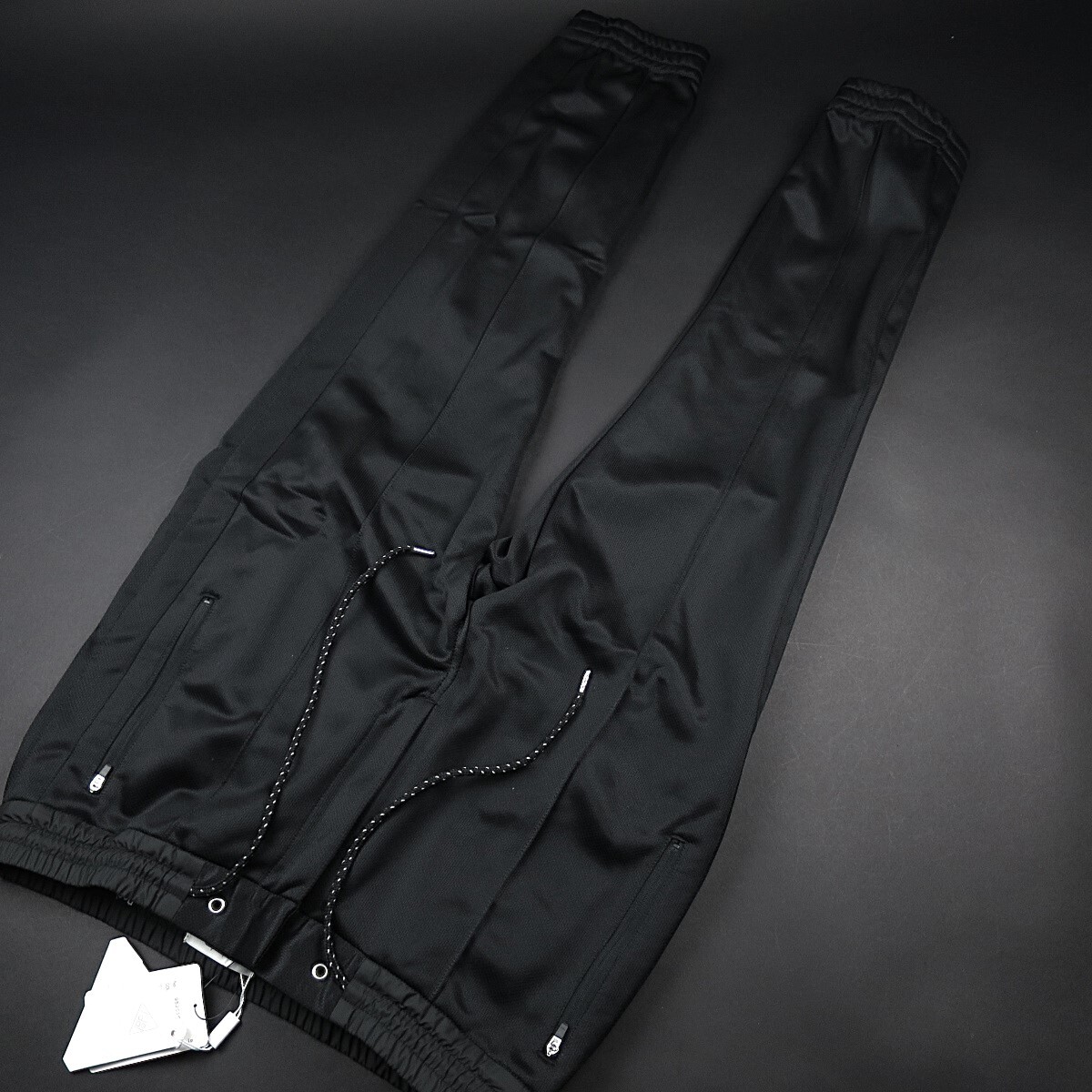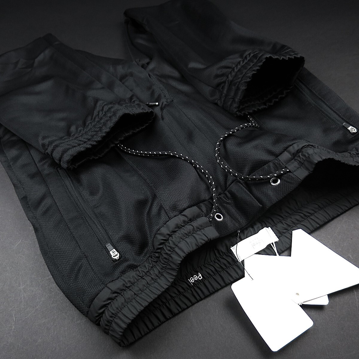 ■ウエストサイドと裾にシャーリングを施したスポーツパンツ。