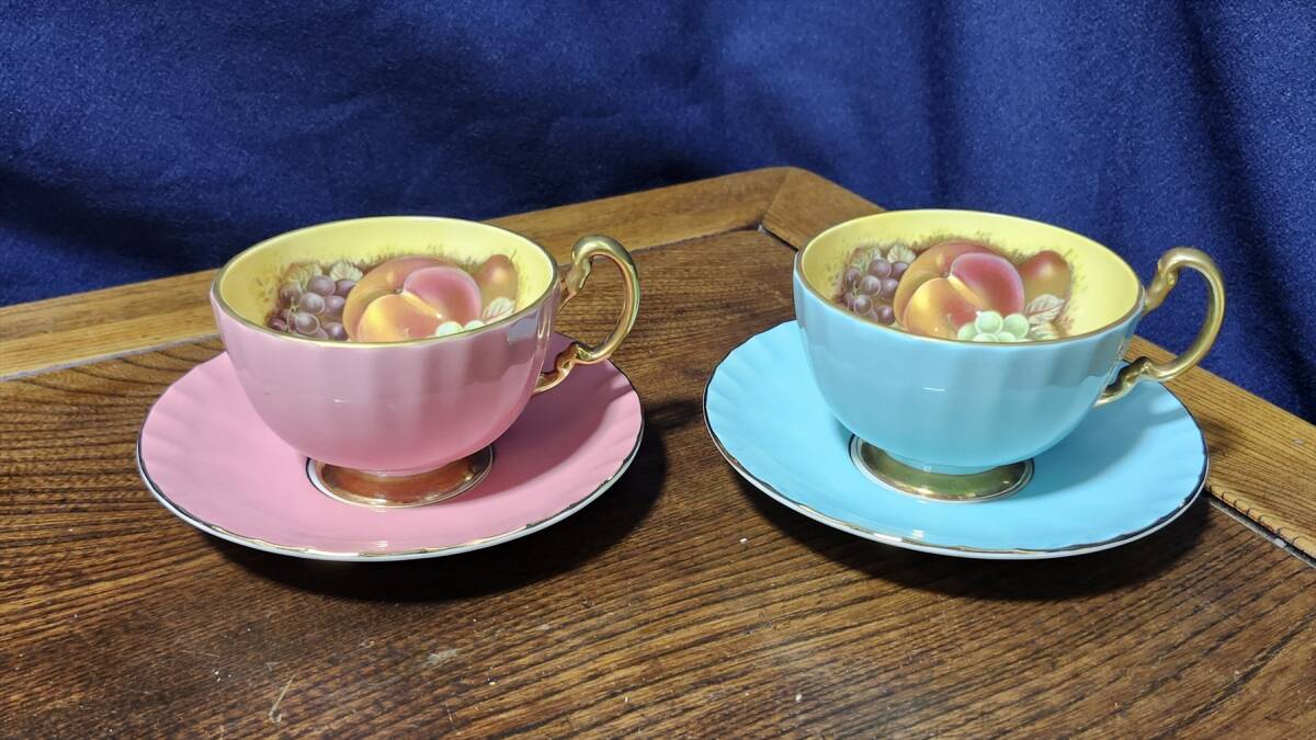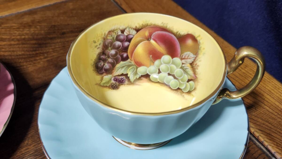 AYNSLEY エインズレイ オーチャードゴールド フルーツ カップ&ソーサー 果物 金彩 2客セット |