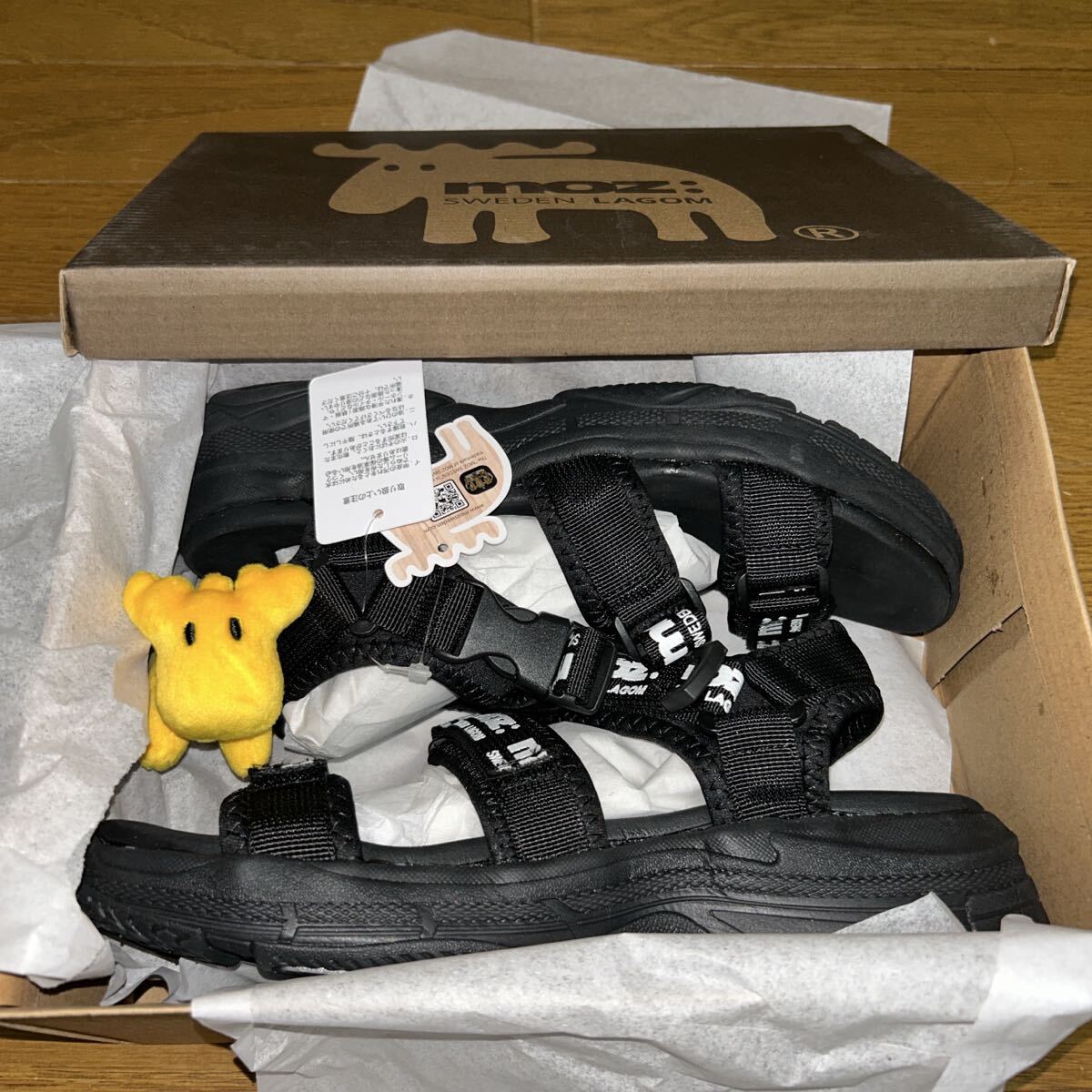 ・mozのスポーティなデザインとロゴ配色がおしゃれなサンダル。シンプルカラーでコーデもしやすく、靴下合わせにするとフェミニンな着こなしも◎