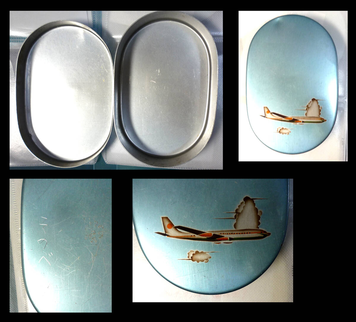 ●アルマイト(アルミ)古い 弁当箱 キズ、記名あります 旅客機