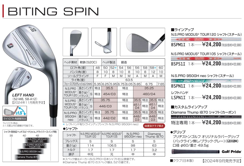 ブリヂストンゴルフ 52度/8×58度/12 モーダス105/S 2本セット バイティングスピン ウエッジ NS.PRO.MODUS 105/S