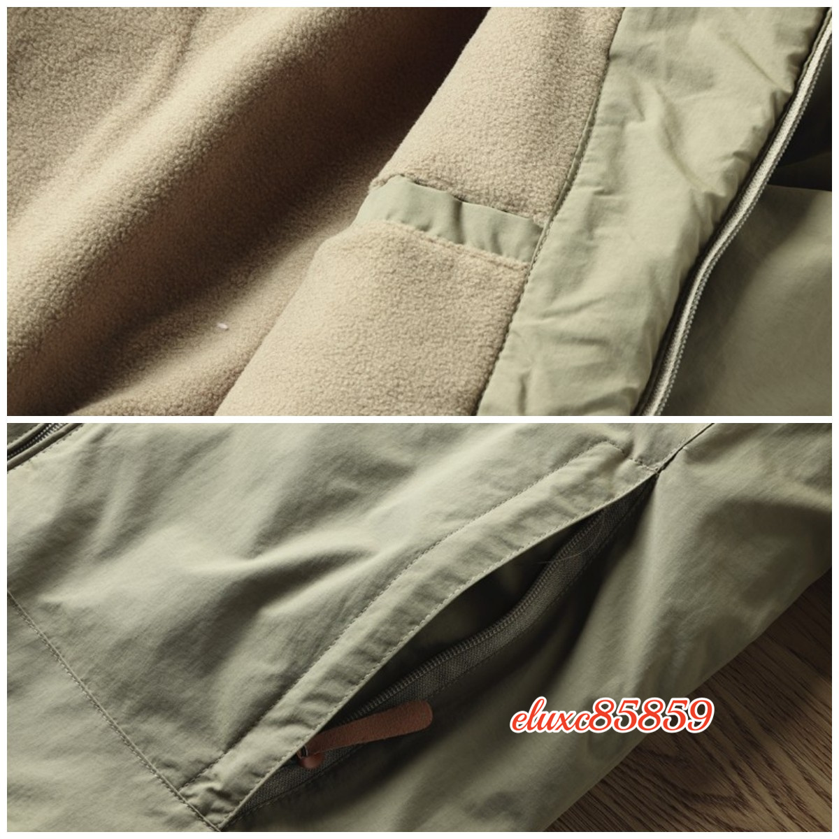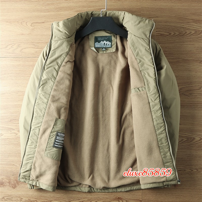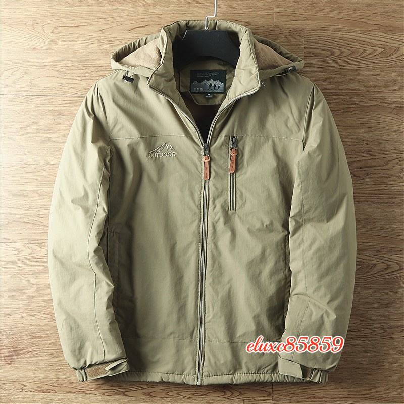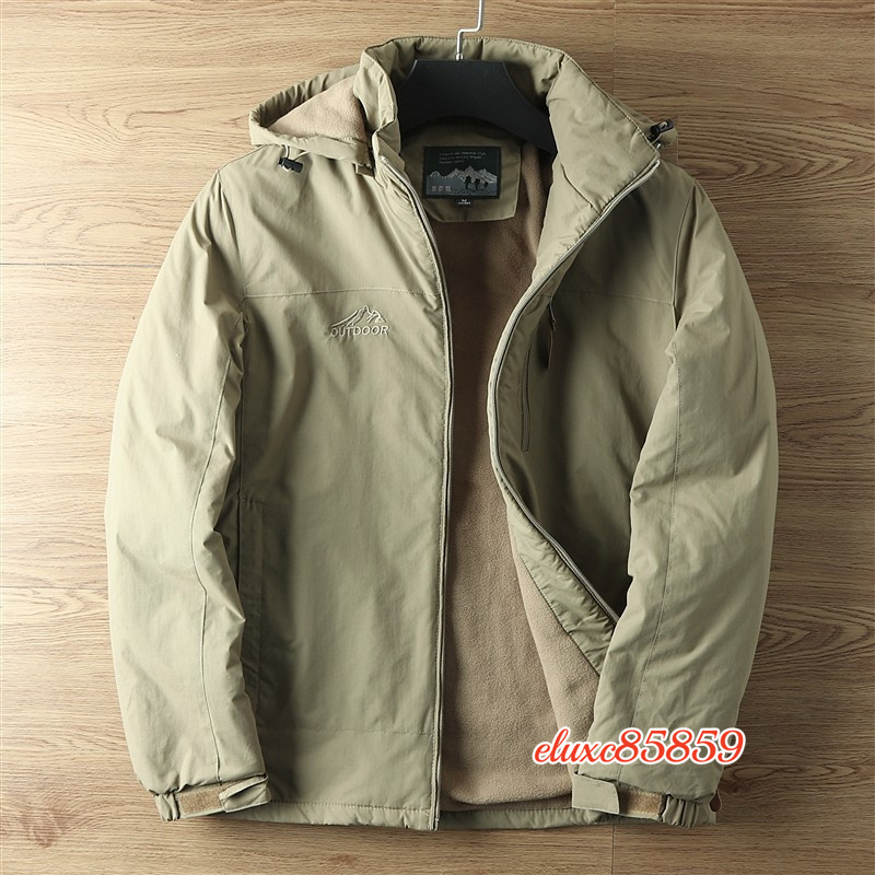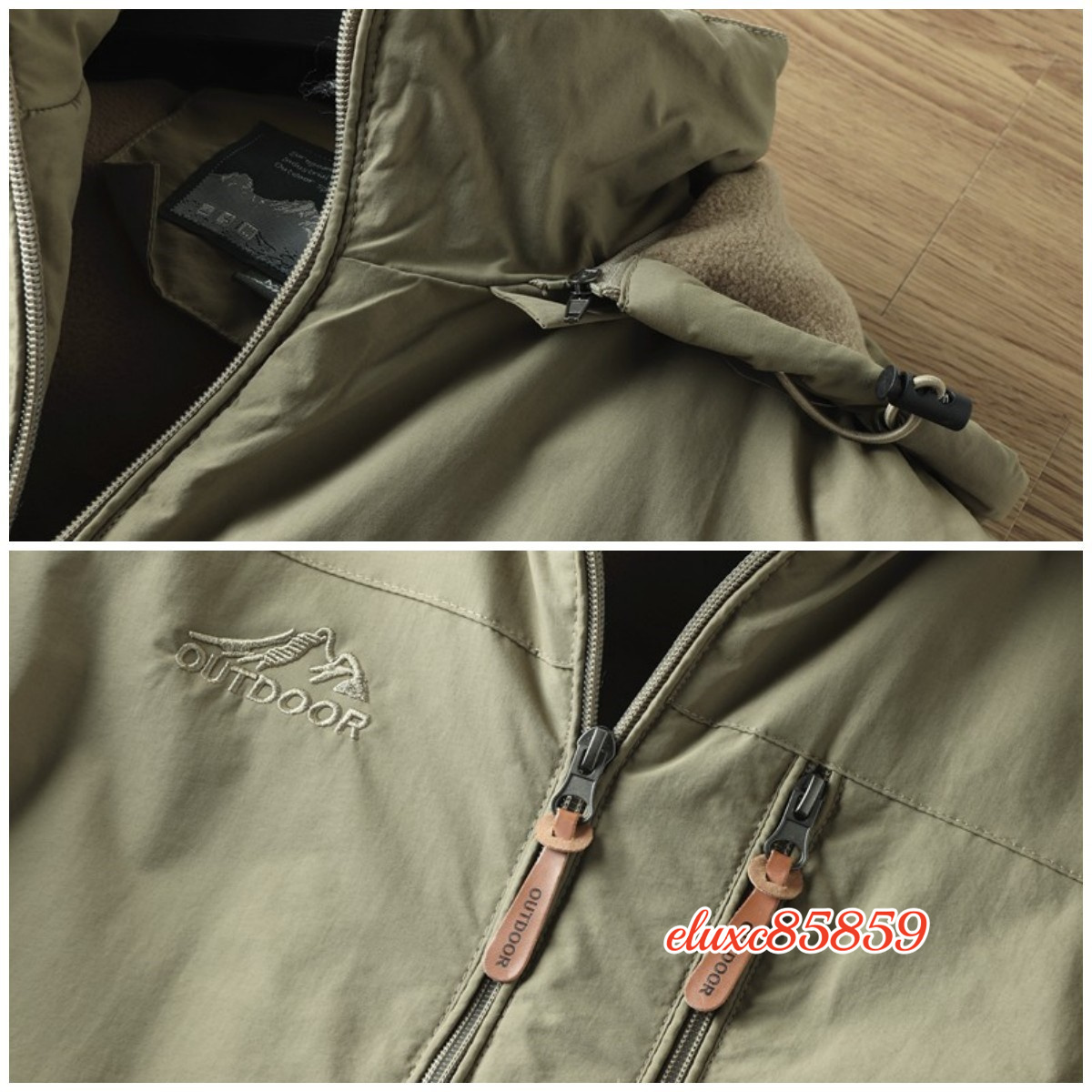 秋冬 メンズ アウトドア ジャケット 防風防水 脱着可能フード 防寒厚手 裏起毛 ジャンパー ブルゾン 登山 ワークウェア サイズ選択可M カーキ