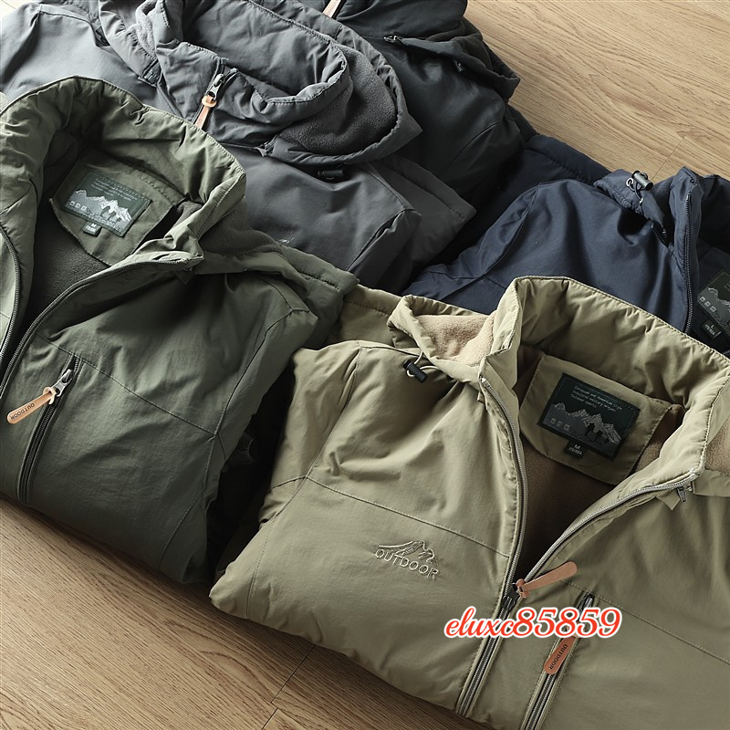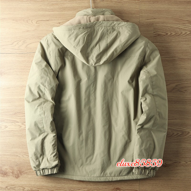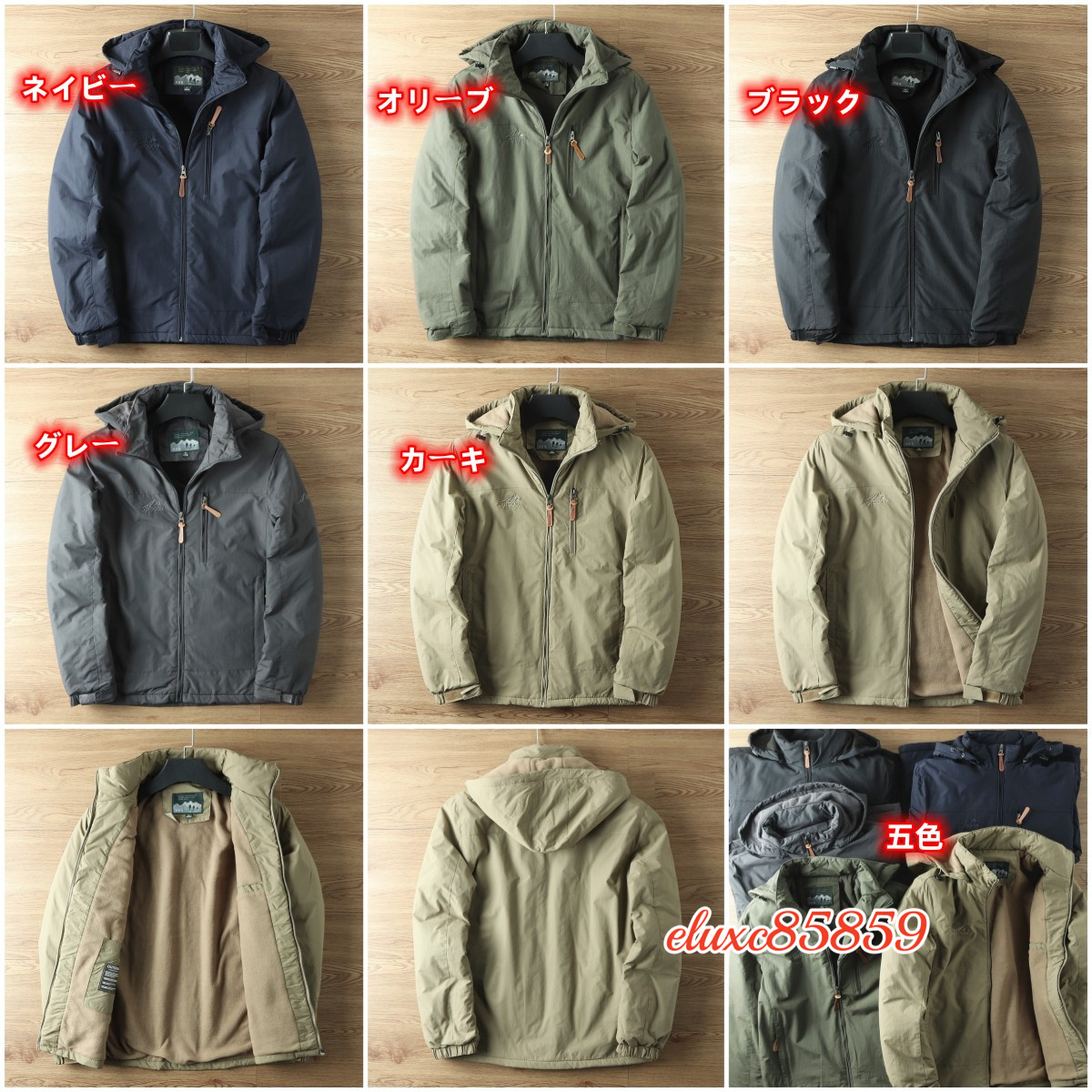 秋冬 メンズ アウトドア ジャケット 防風防水 脱着可能フード 防寒厚手 裏起毛 ジャンパー ブルゾン ワークウェア サイズ選択可M カーキ