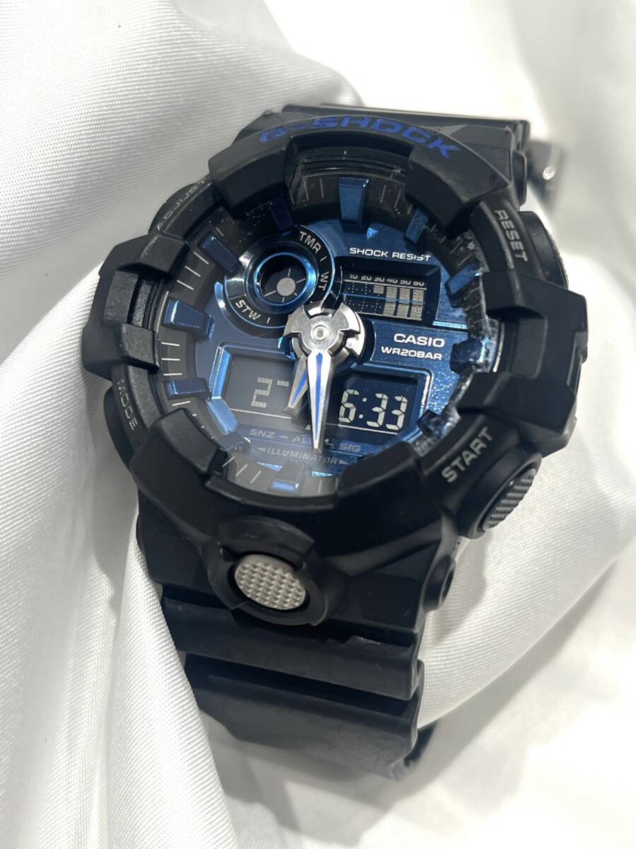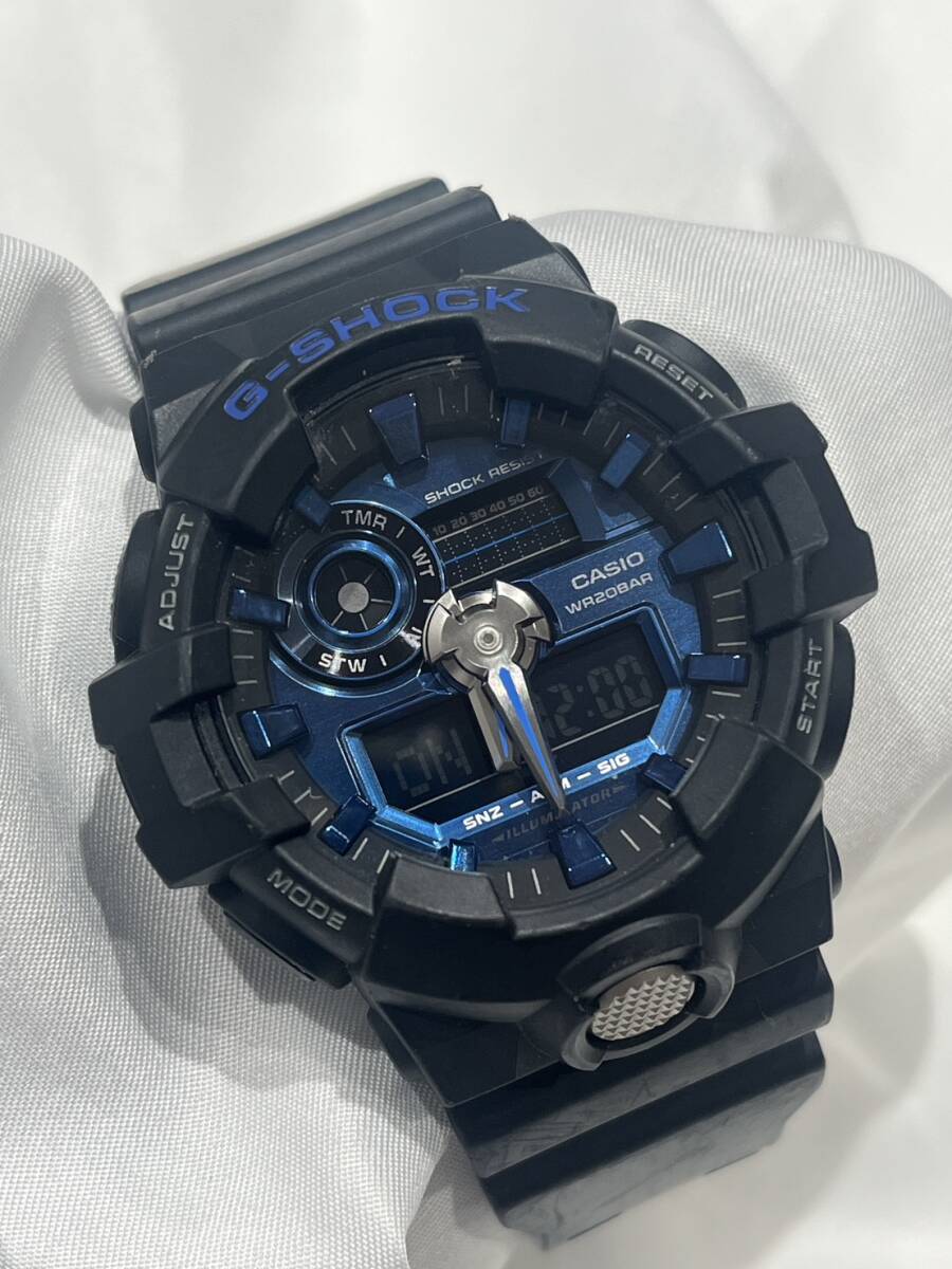 WA1094/ CASIO カシオ G-SHOCK G-ショック GA-710-1AJF GA700 シリーズ クォーツ メンズ 腕時計 黒 ブラック ブルー スポーツ 定番 現状品 | ||