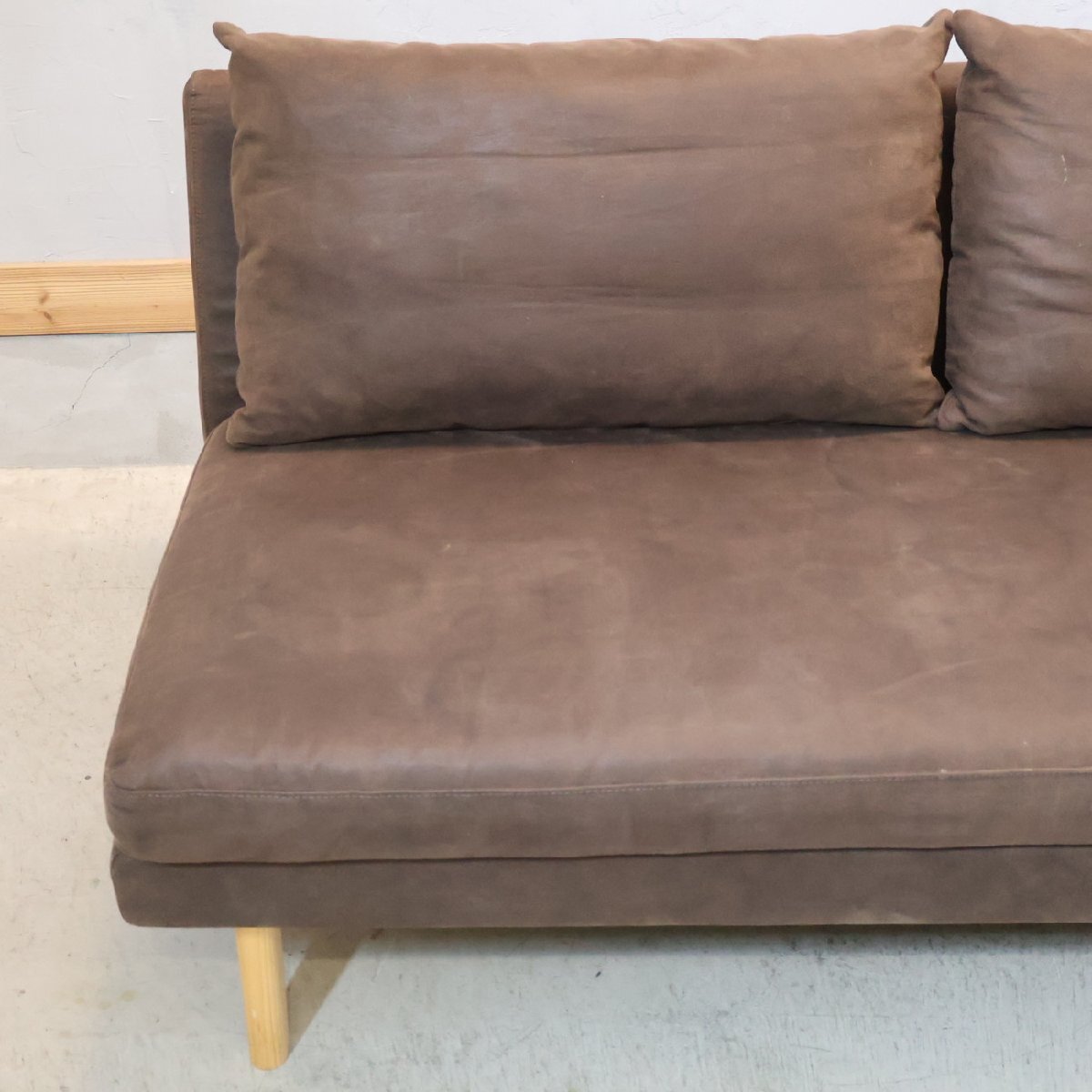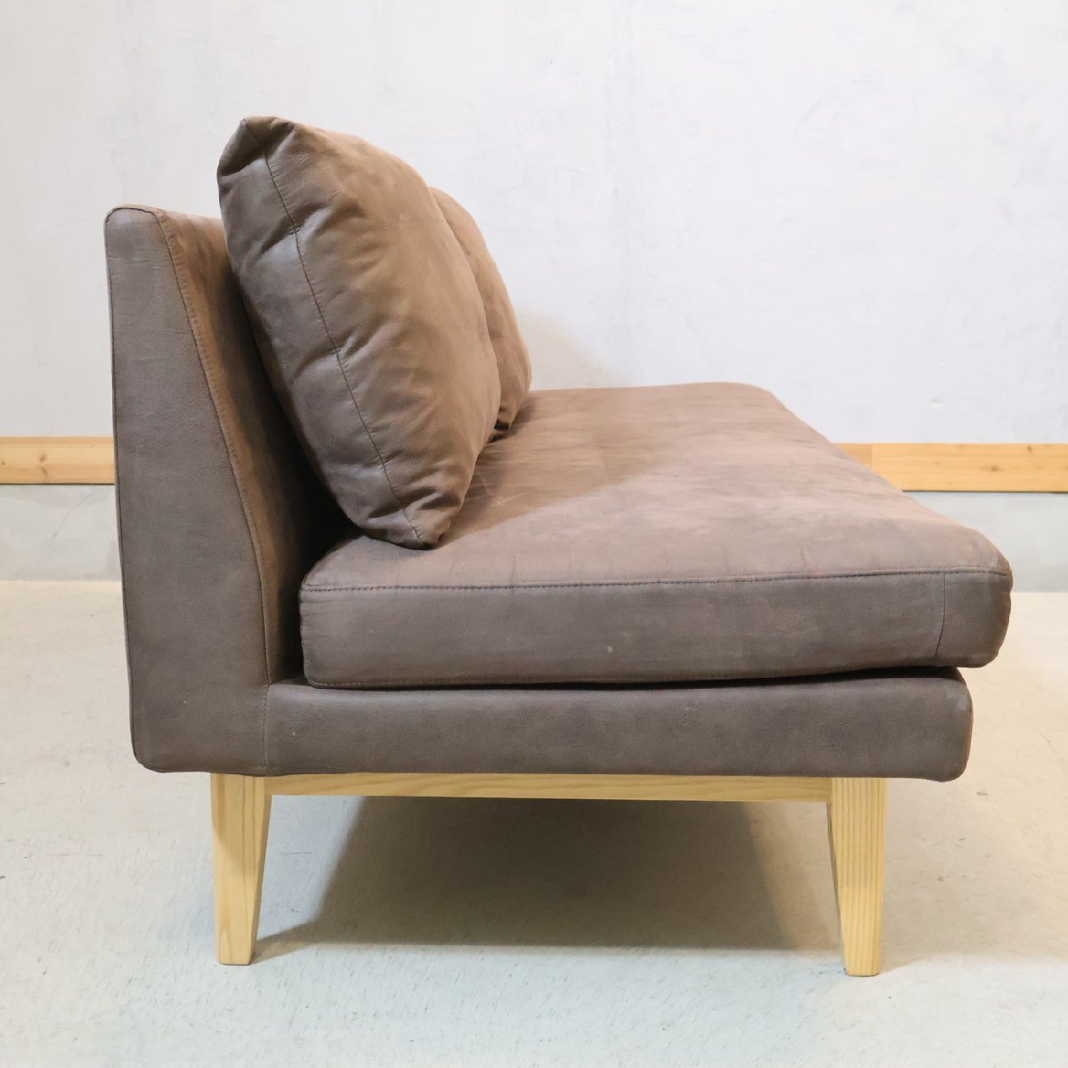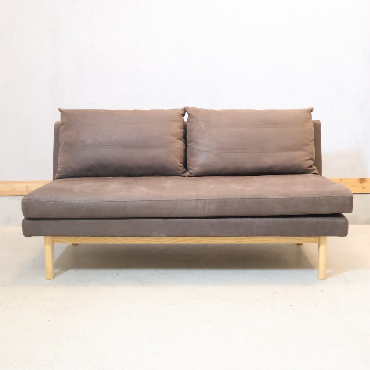ナチュラルな質感と優しい色合いの2人掛けソファ。