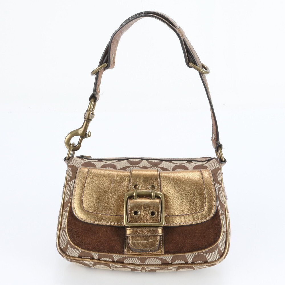 ■極美品■コーチ■シグネチャー キャンバス レザー ショルダーバッグ 肩掛け トート ハンド 1495 ブラウン レディース RUE CU19-1