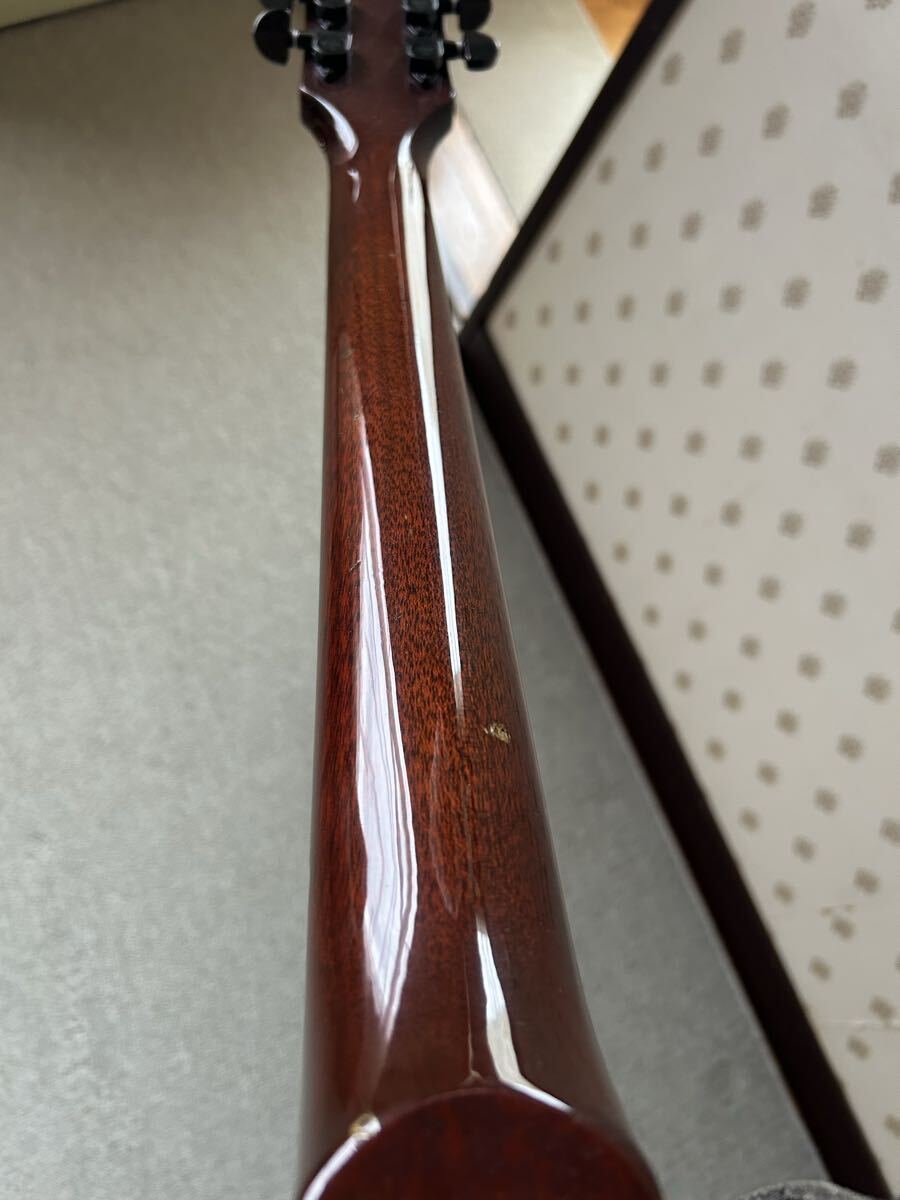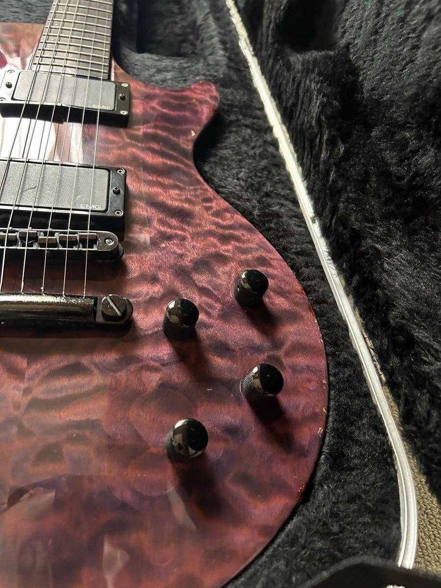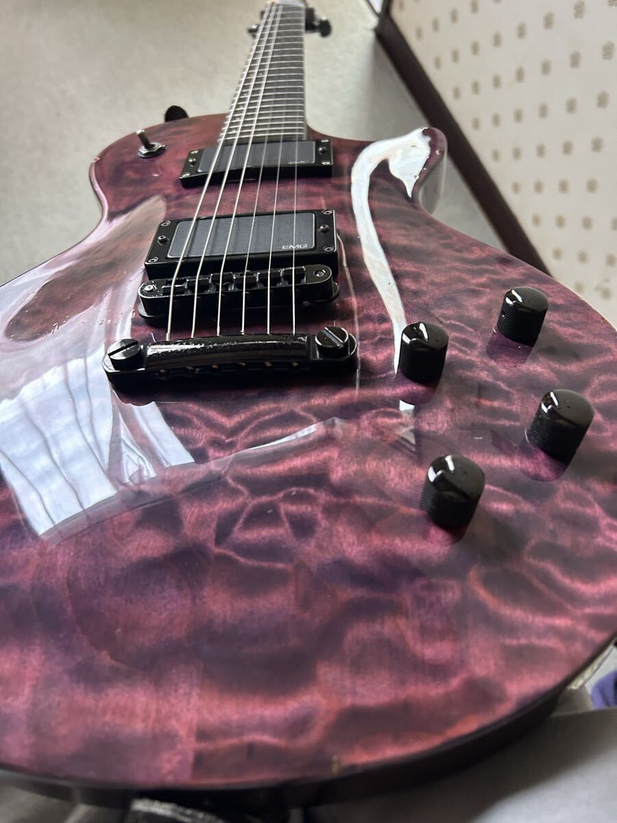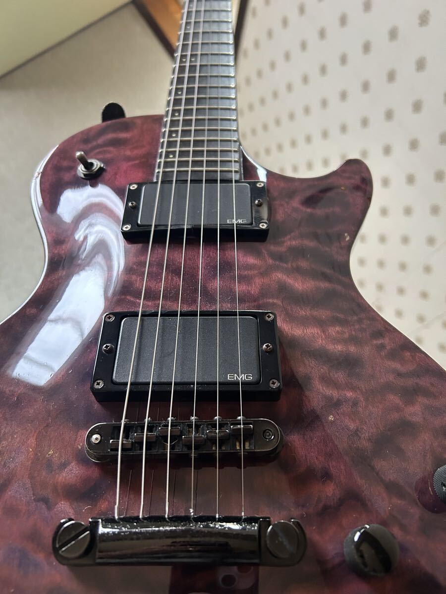 現在ではオーダー不可能の木材を使用したボディー、ネックにホンジュラスマホガニー材、ボディートップには鮮やかな木目のキルテッドメイプル材、指板には漆黒のエボニーを使う極上のスペックです。