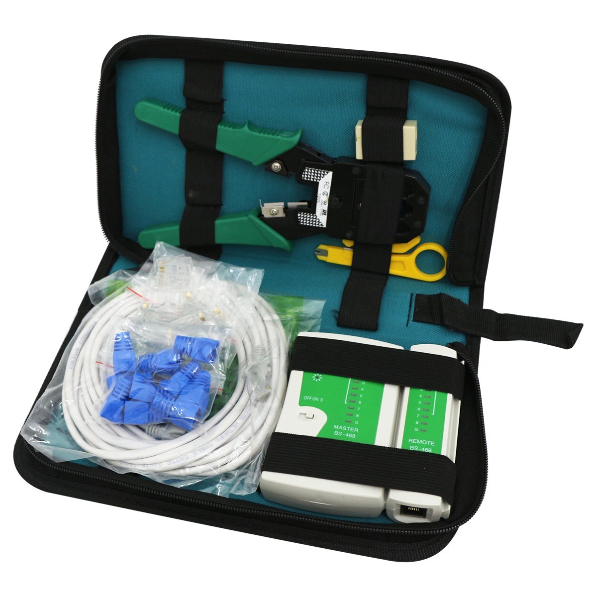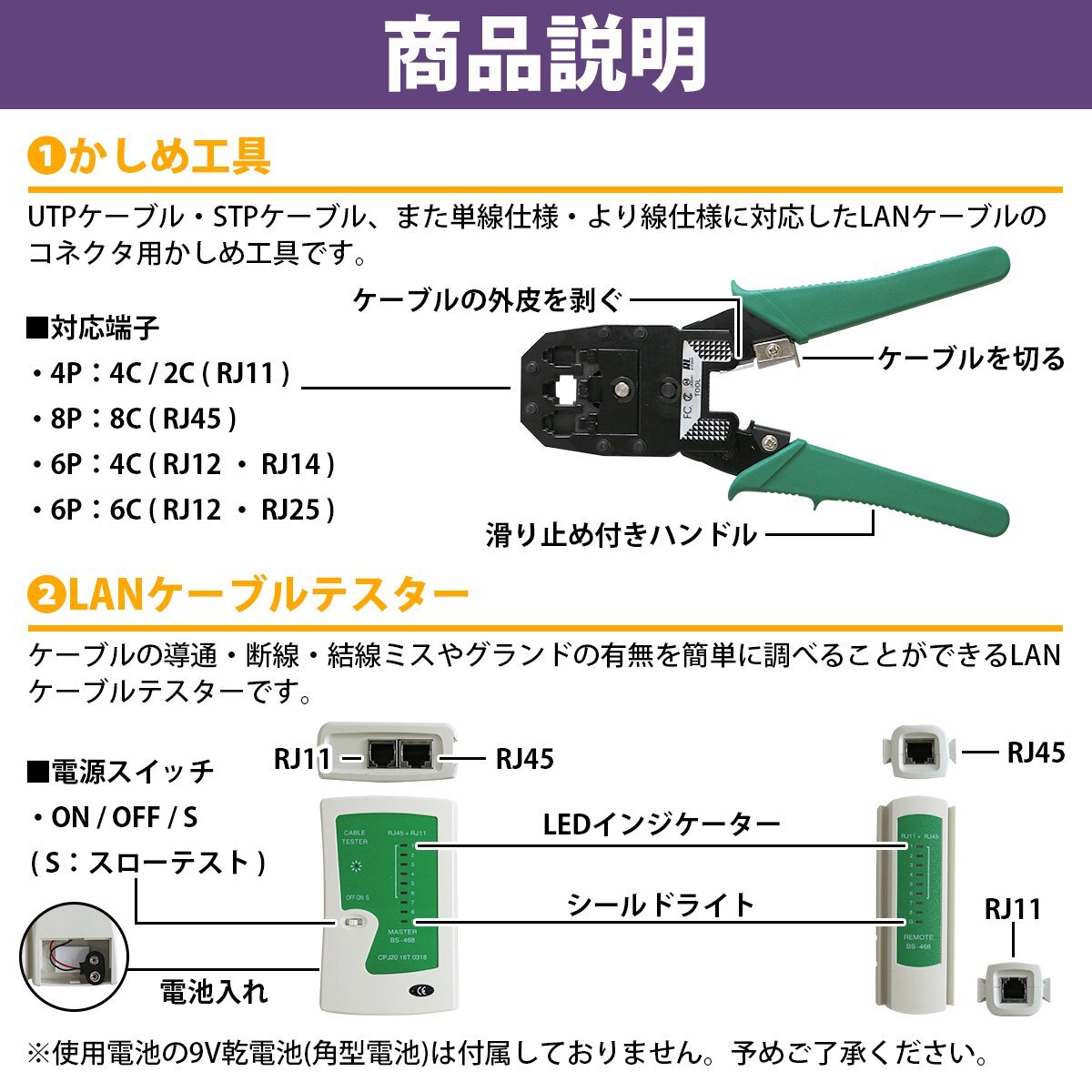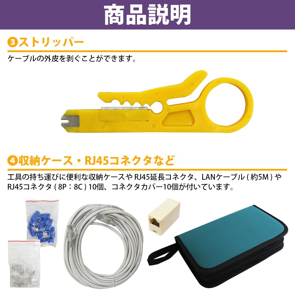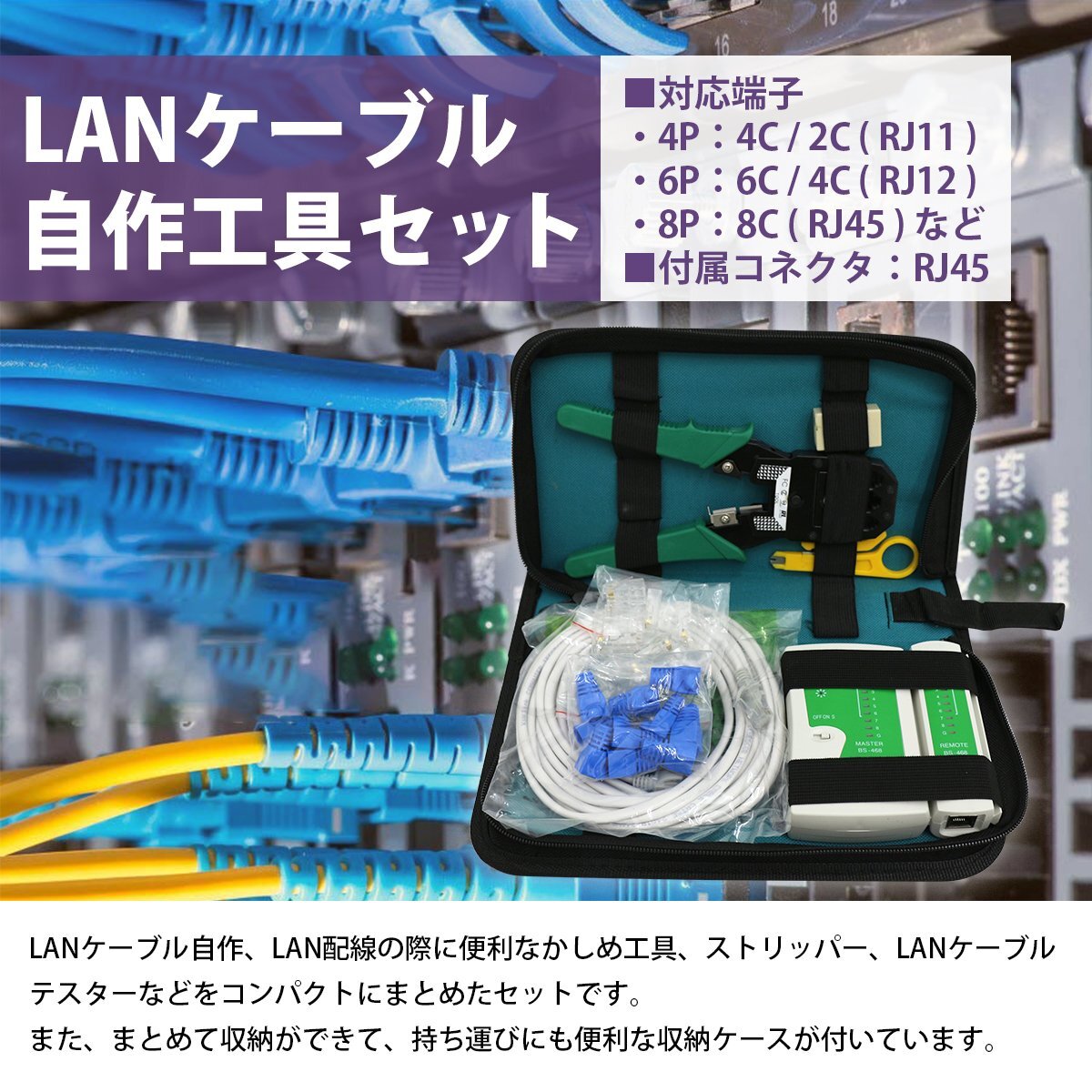 [RJ-45 延長コネクタ付] LAN ケーブル 自作 工具 セット コネクター プラグ+かしめ+テスター 収納ケース ラン コード カシメ