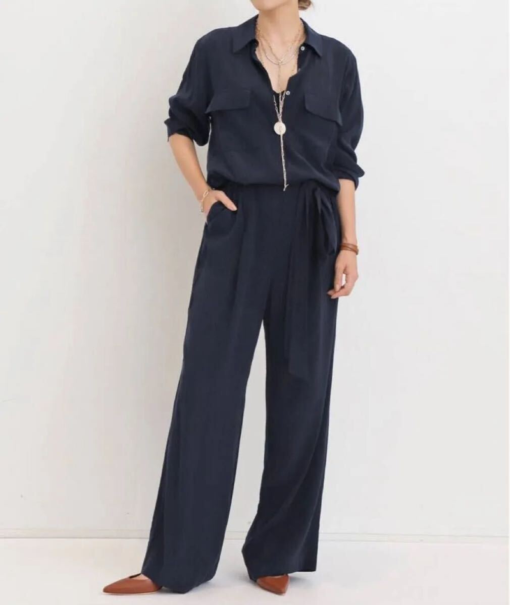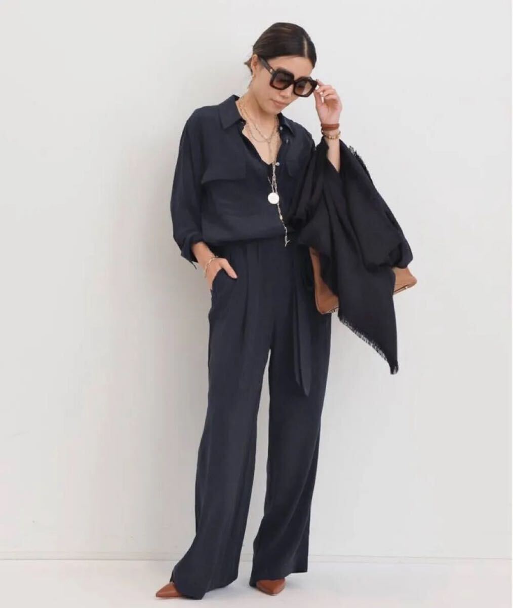 シャツタイプのきちんと感に程良い落ち感が加わった、大人のオールインワン。