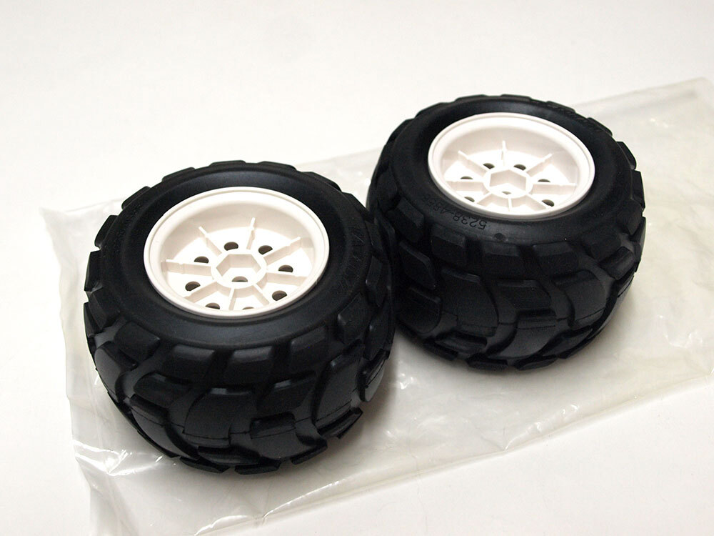 【M1833A】タミヤ WR-02他 リヤ タイヤ・ホイール 2個 未接着(ラウンドブロック バブル タイヤ 後輪 六角ハブ スペア パーツ 田宮)