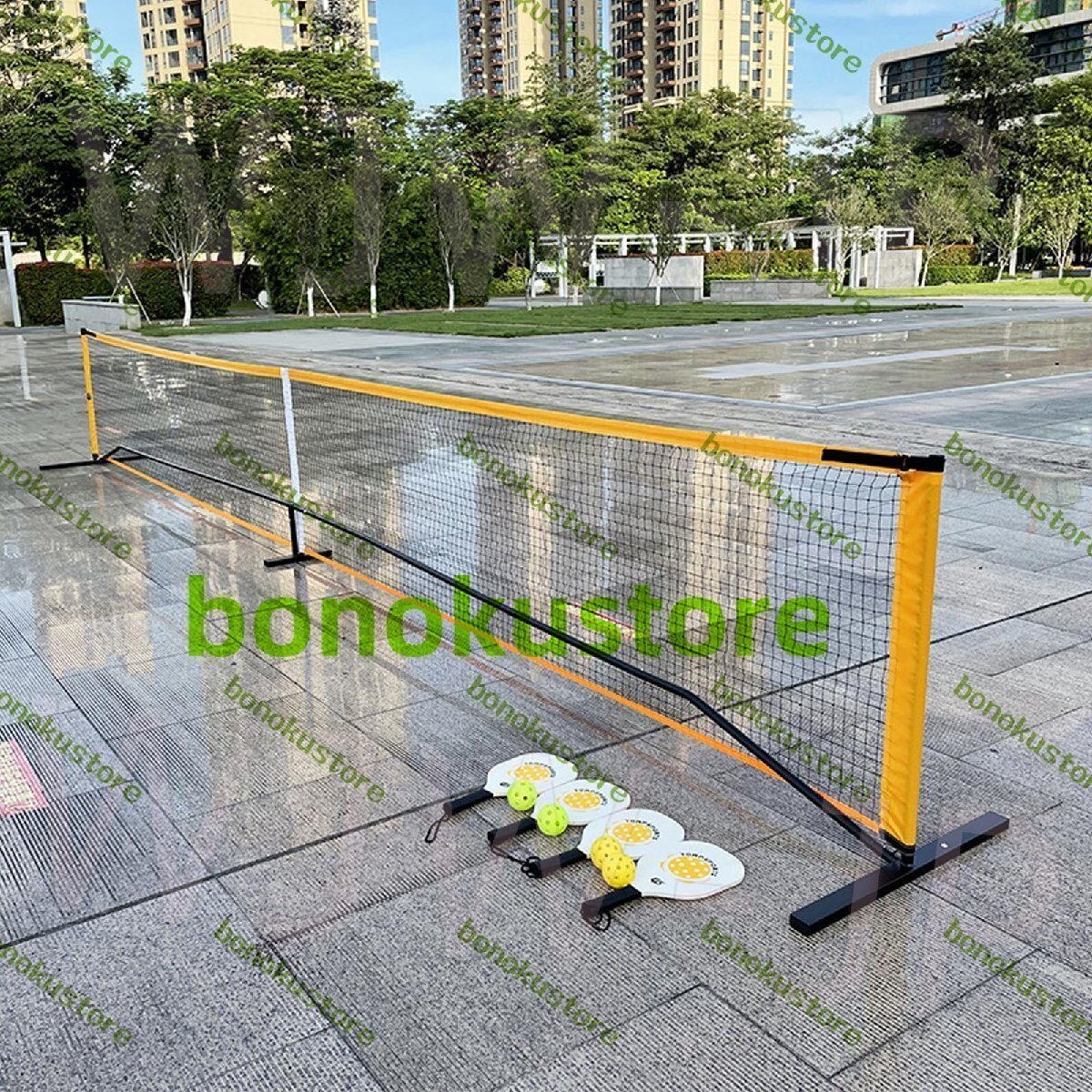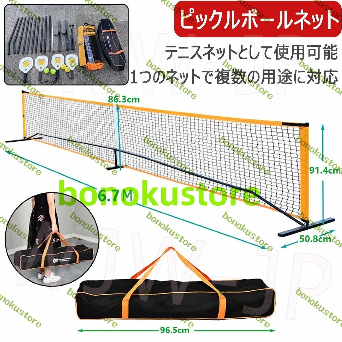 ピックルボールネット 屋内/屋外 ポータブル テニスネット 6.7M 規定サイズ 練習用ネット 専用ピックルボールパドル4個 ピックルボール4個付き 収納バッグ付き 裏庭用 私道用 組み立て簡単 各天候条件対応