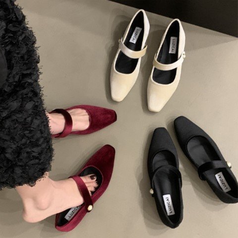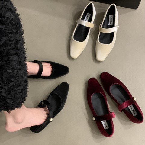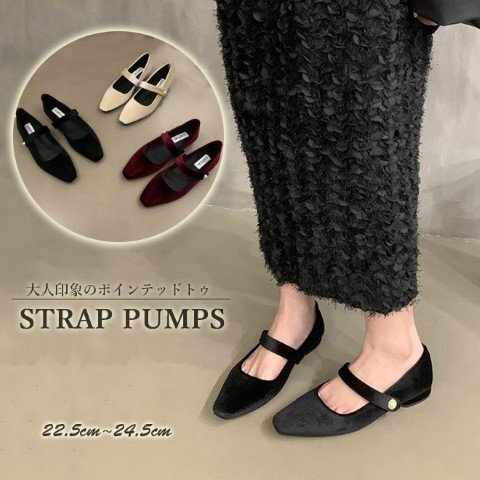 ・トレンドのやわらかくて質感の良いベロア調パンプス。