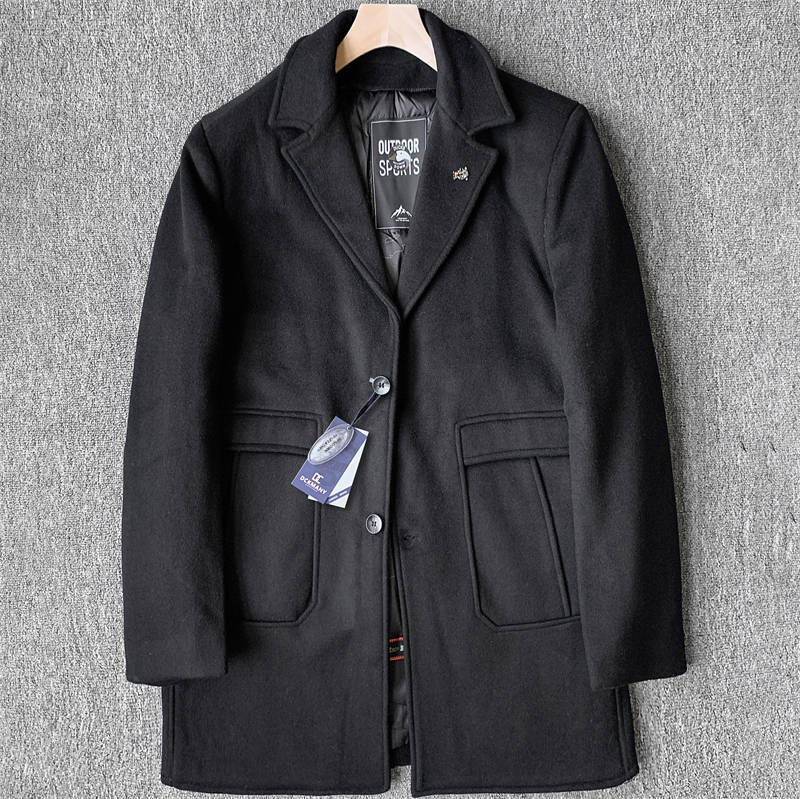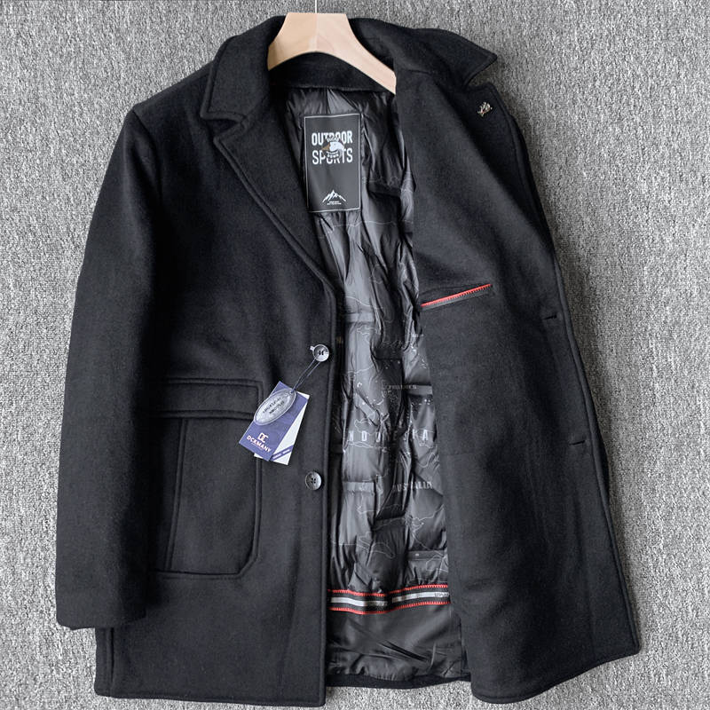 9979-4XL黒 ダウンコート メンズ ウール混 ダウン90% ダウンライナー 新品 DCKMANY 防寒 暖かい 厚手 冬服 紳士 アウター ミドル丈 コート