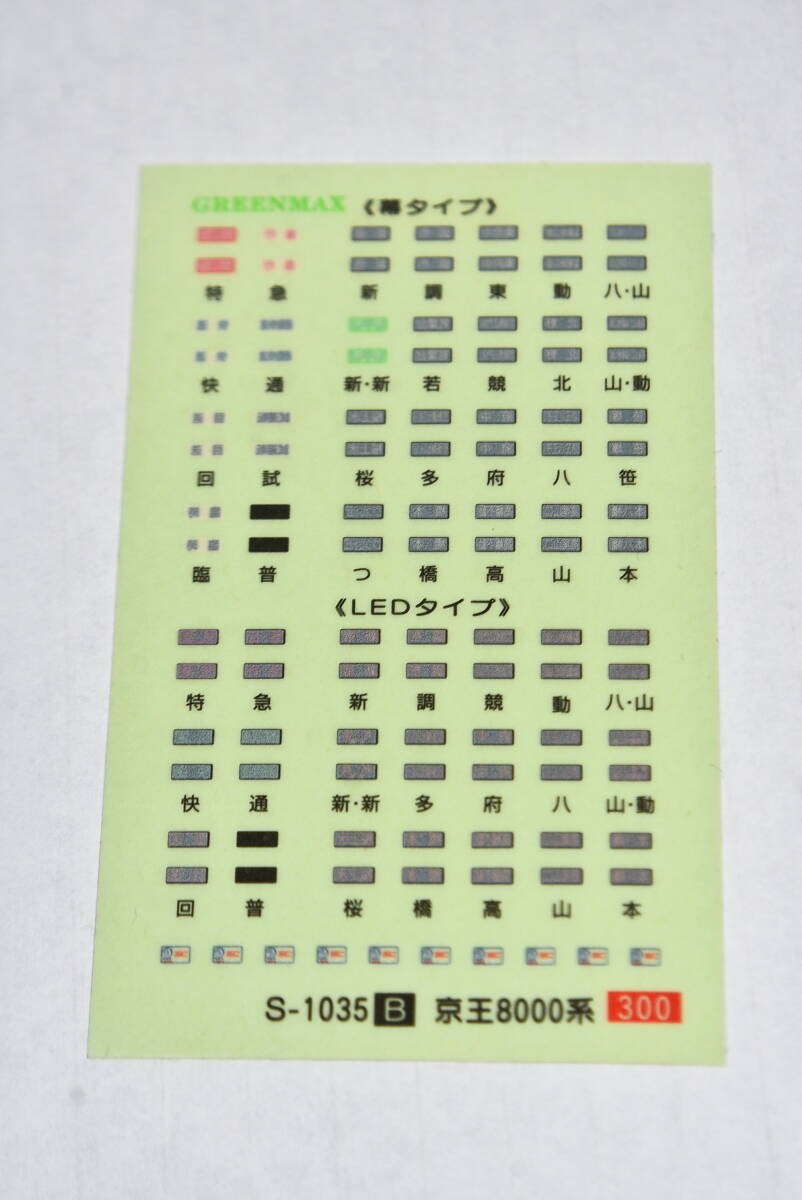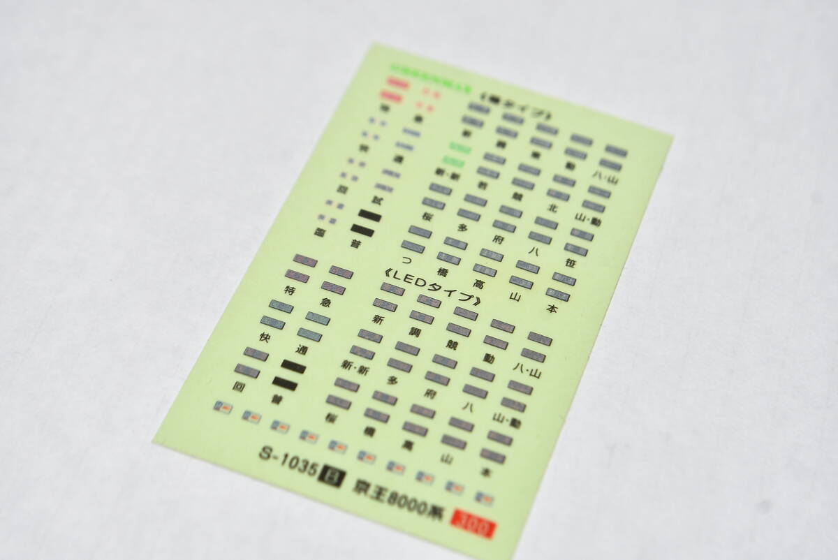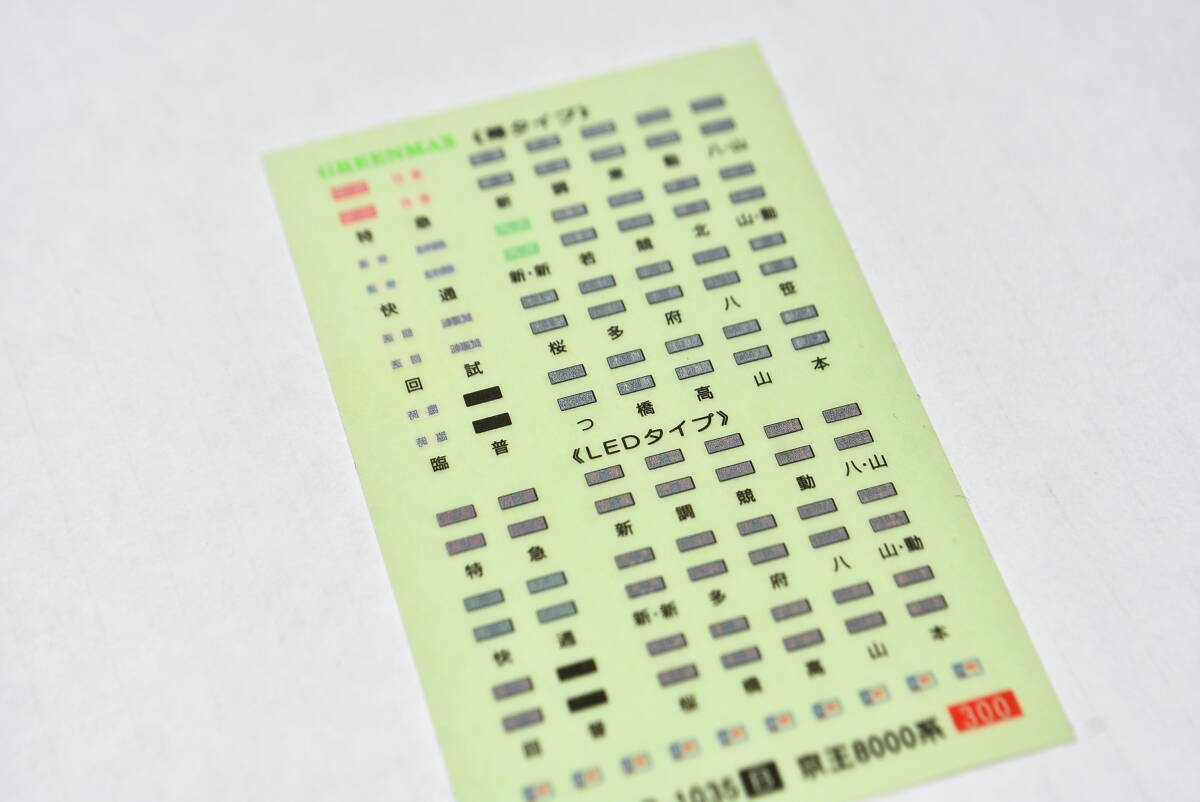 グリーンマックス製の京王8000系用前面種別行先表示ステッカーです。