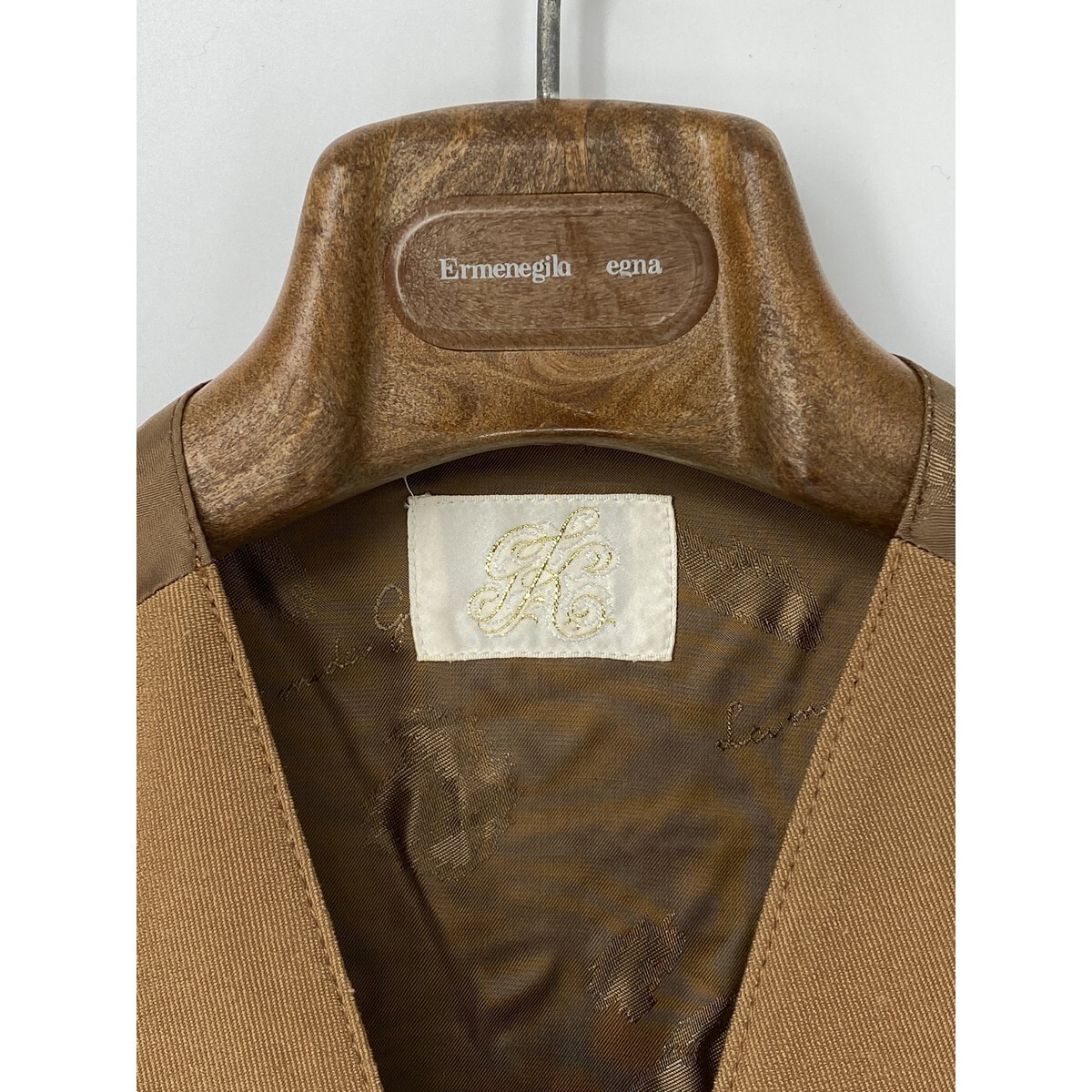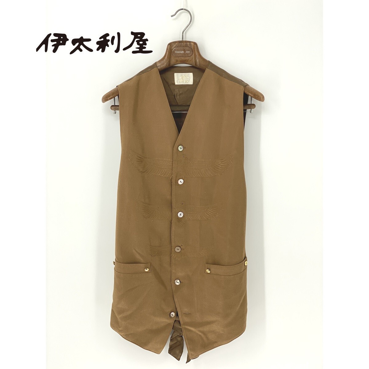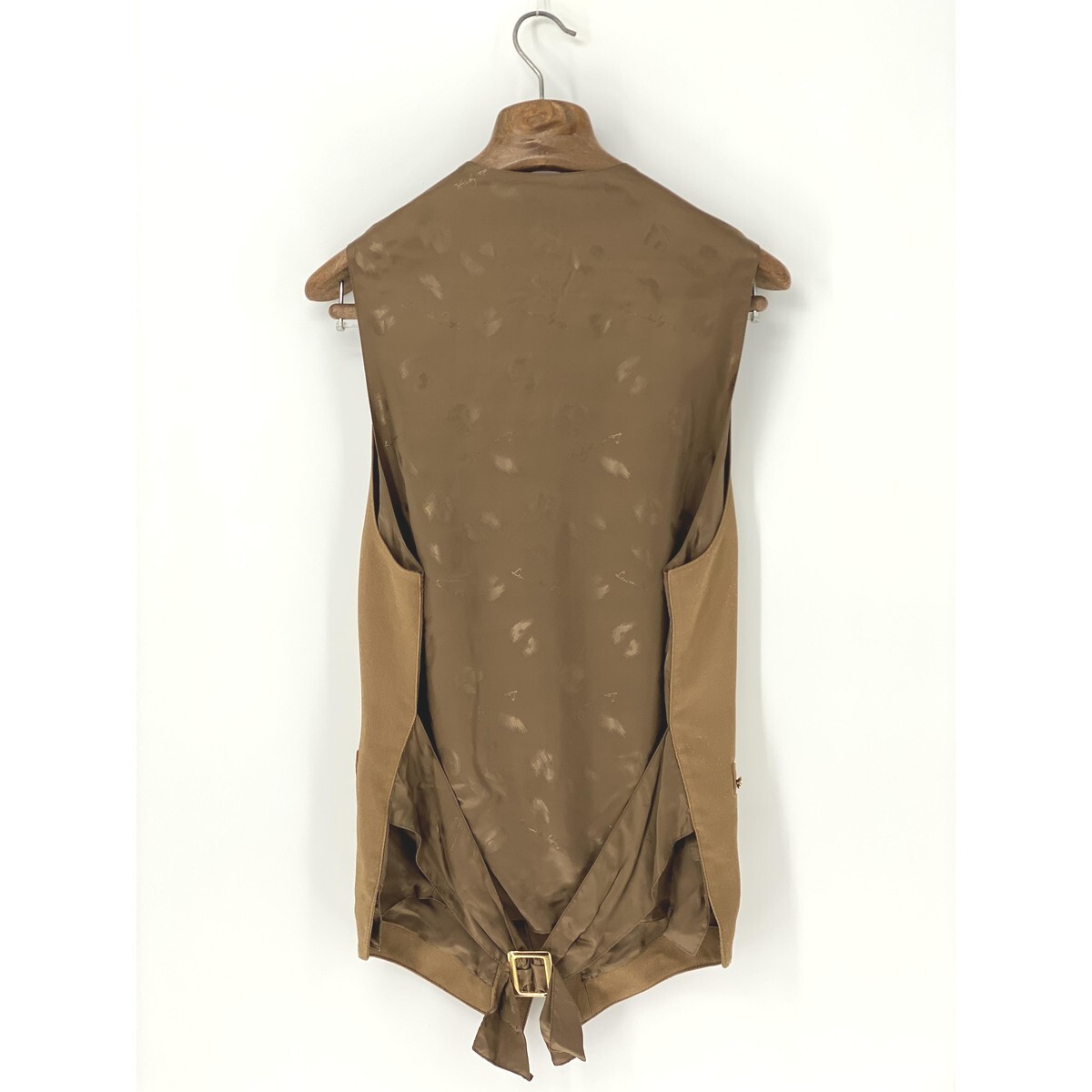 A8889/極美品 春夏 K Leilian レリアン ノースリーブ 光沢 Vネック 刺繍 装飾 ロング ベスト ジレ ワンピース 11 XL程 茶 レディース
