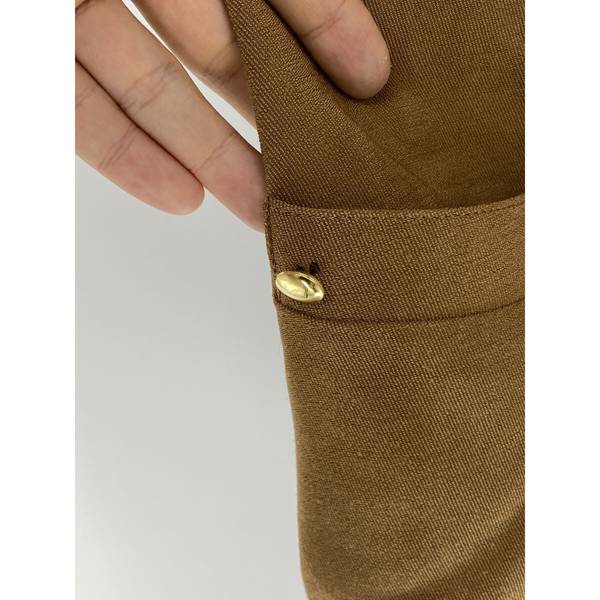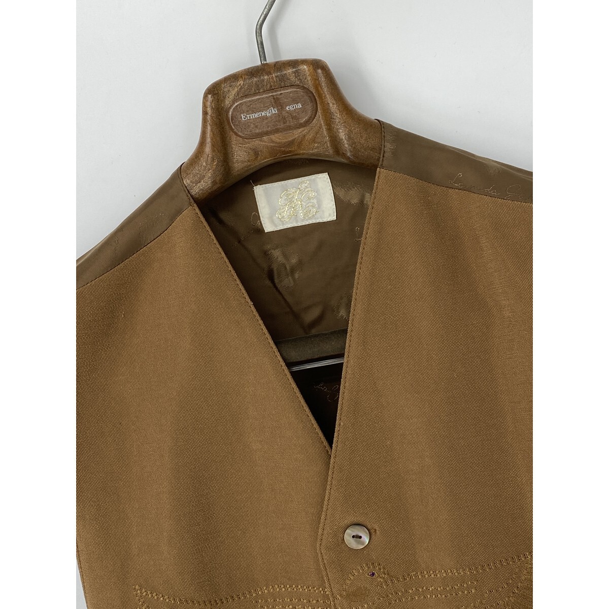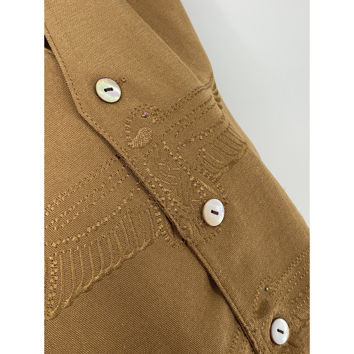 A8889/極美品 春夏 K Leilian レリアン ノースリーブ 光沢 Vネック 刺繍 装飾 ロング ベスト ジレ ワンピース 11 XL程 茶 レディース