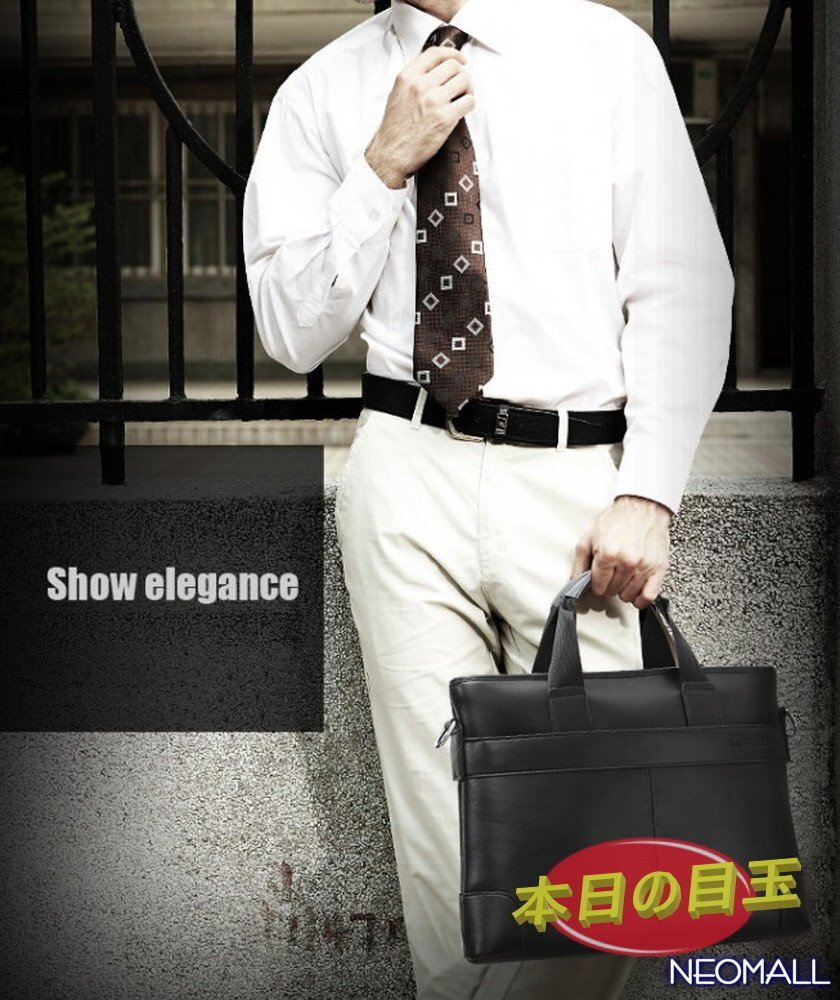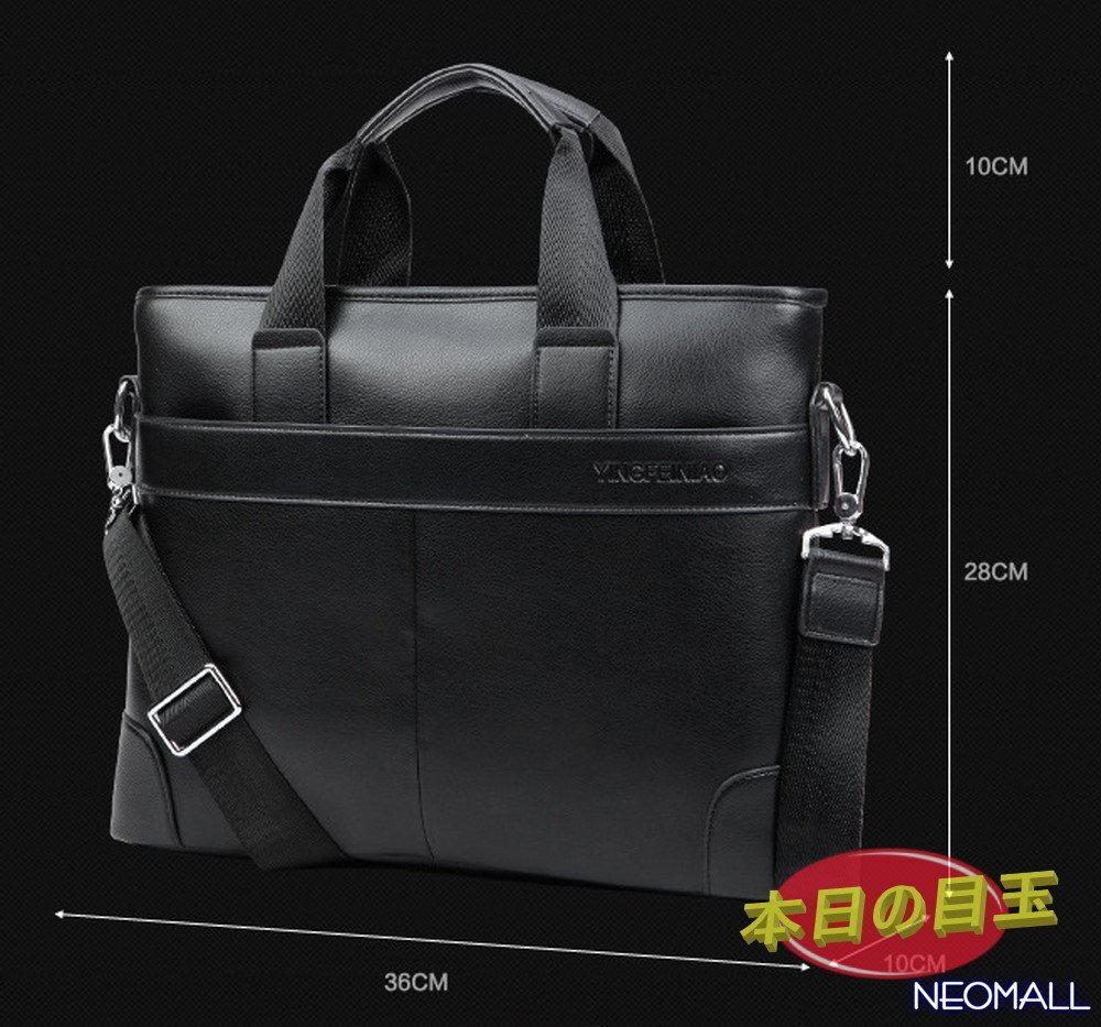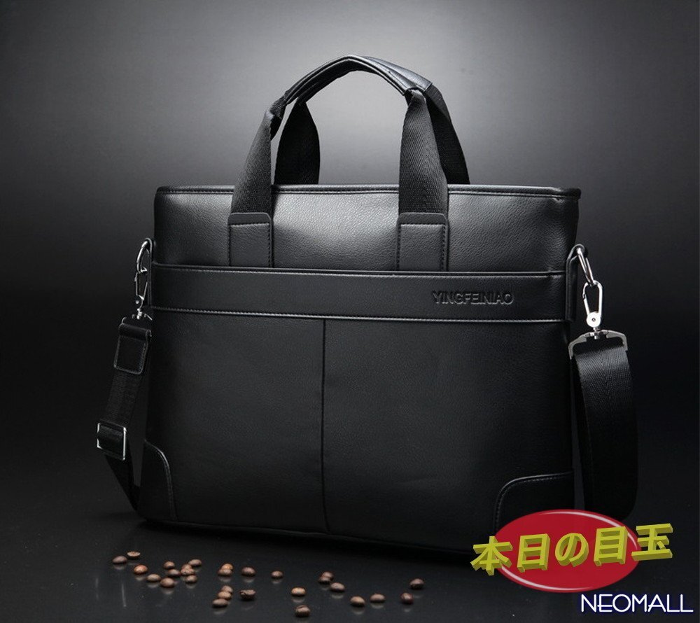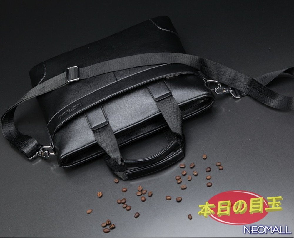 1円〜 新品 メンズ 高級PUレザー ビジネスバッグ【602】ブラック ブリーフケース ショルダー スクエア 横型 大人気 質感◎
