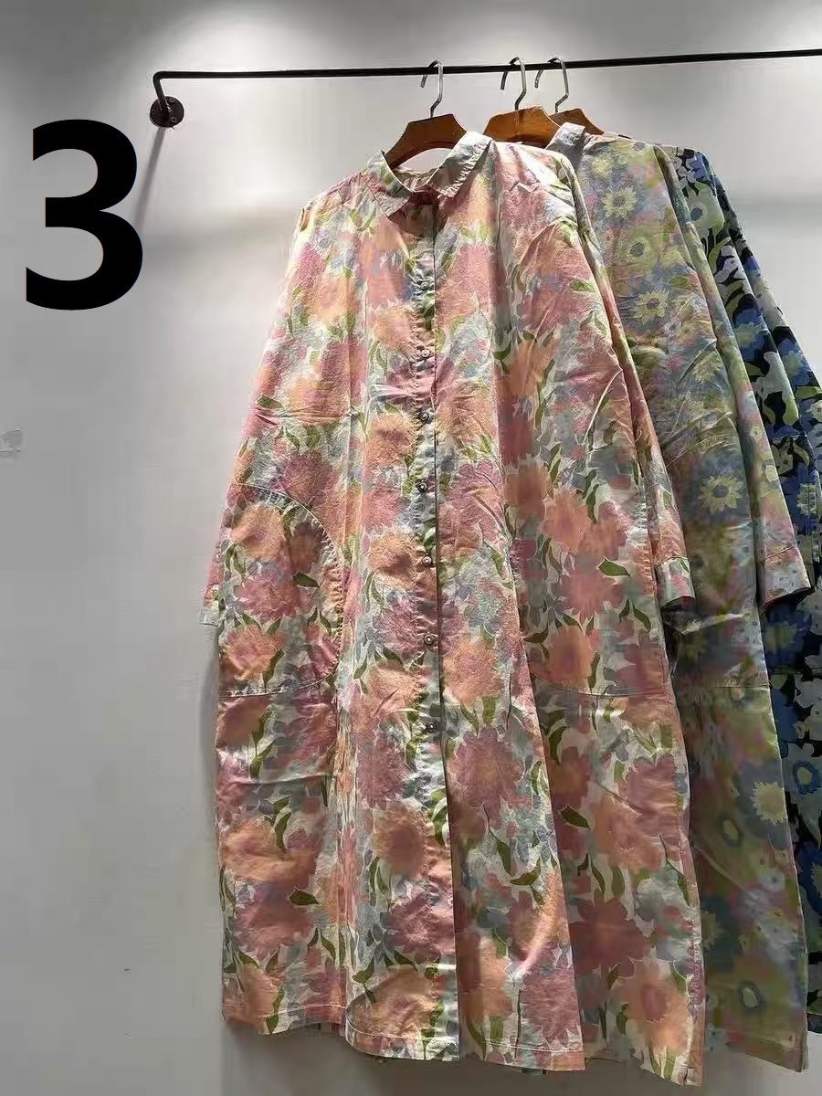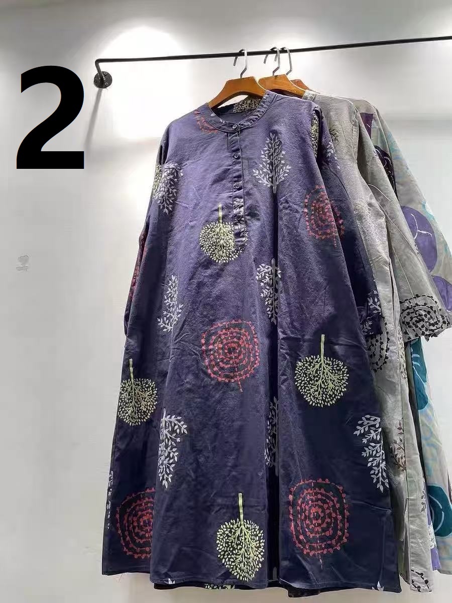 人気推薦シャツワンピース ロングトップス チュニック ゆったり 綿100% ナチュラル 肌触りいい 柄