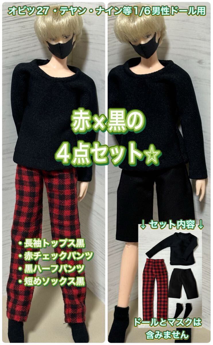 【重要】1/6男性ドール用のお洋服ではありますが、ドールのサイズはまちまちであり、全てのドールに対応するとは言い切れません事をご理解の上ご検討下さいませ。(当方では、主にオビツ27男性スリムボディ〜ナインボディに合わせて製作しております)