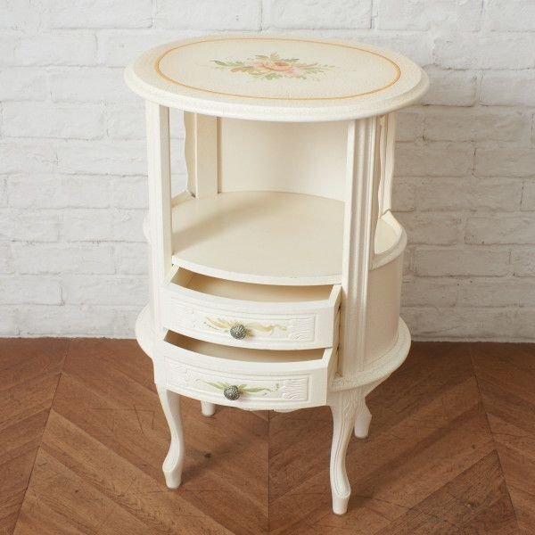 クラック加工やカブリオールレッグなど高級感漂う仕上がりのサイドキャビネット。古き良き西欧の伝統を感じさせ、空間に優雅な雰囲気を添えてくれる一品です。