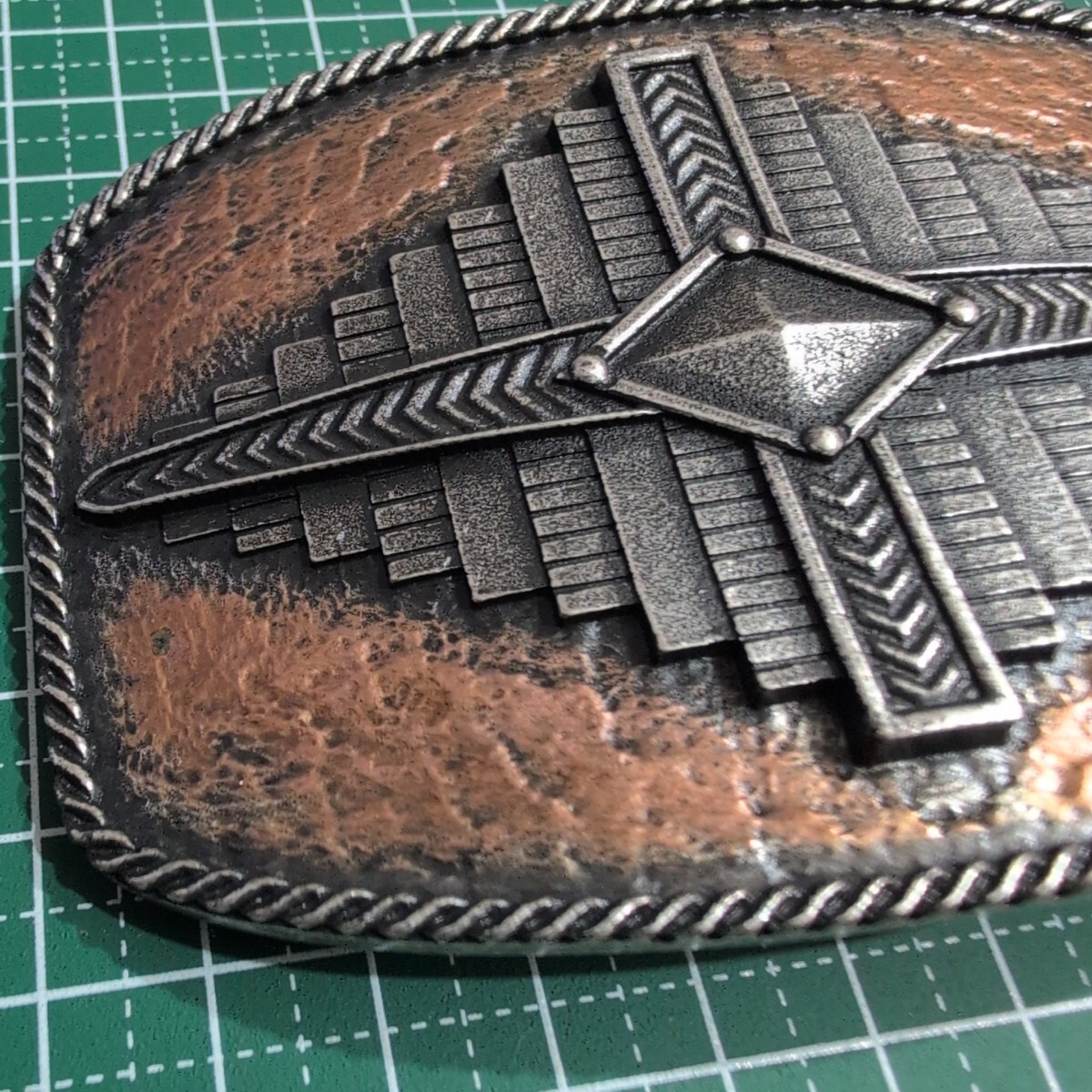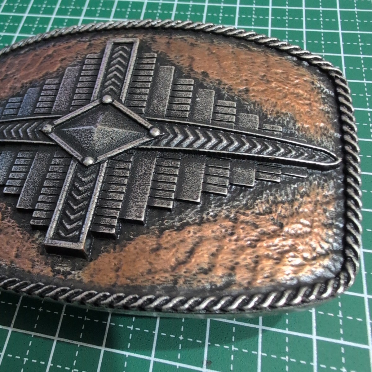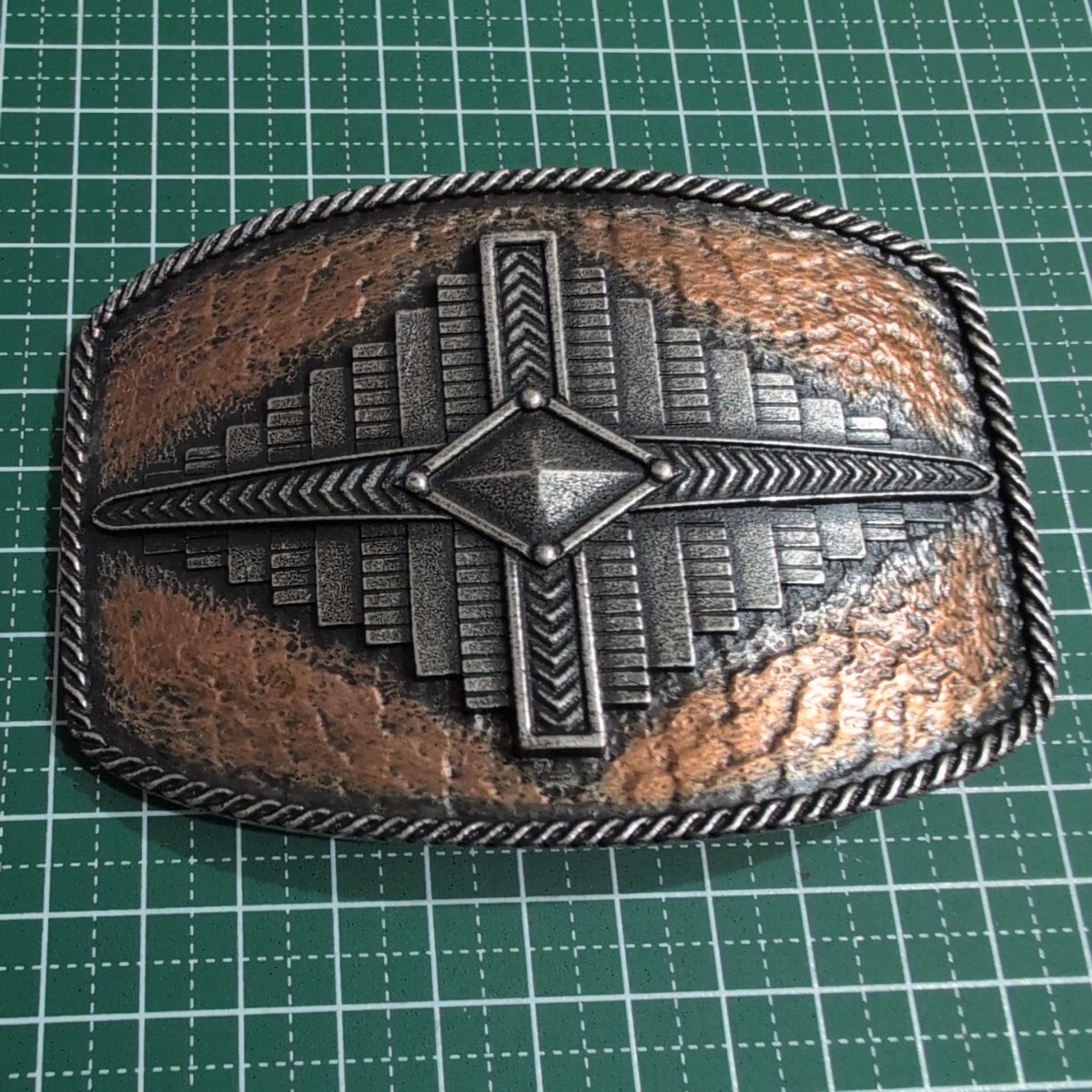 ■バックル 菱形 ひし形 幾何学 ナバホ族デサイン? 大判 大きい Montana Silversmithsモンタナシルバースミス 非鉄 ビンテージ ベルト■