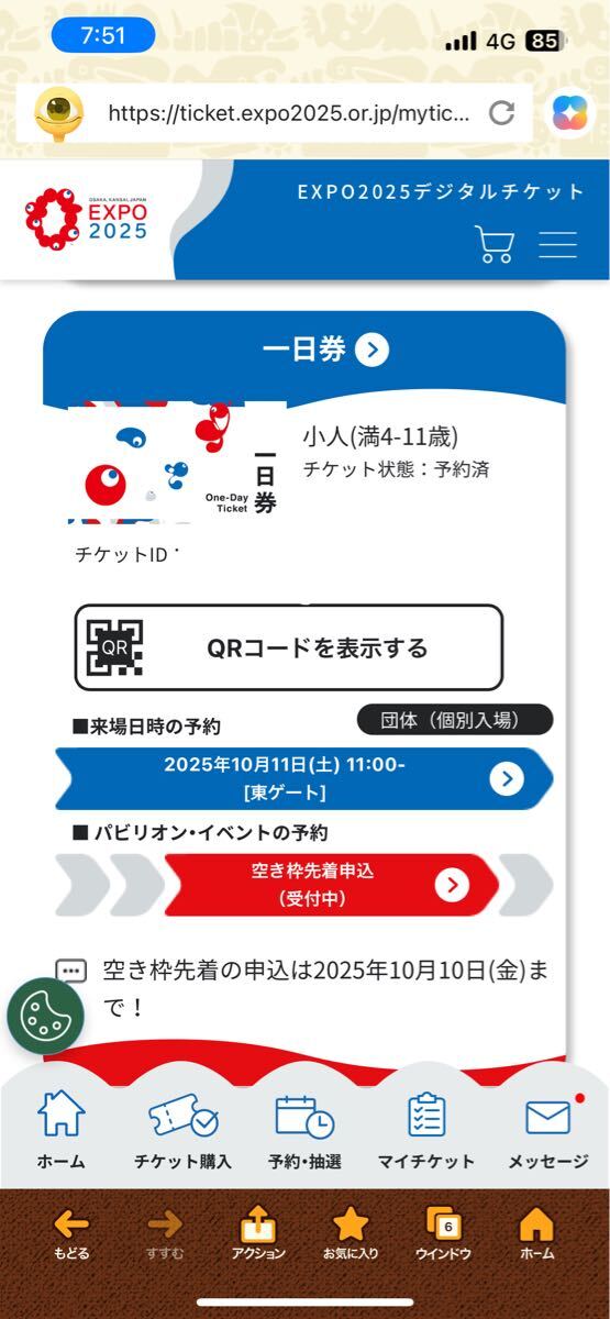 ・10月11日(土)11時〜、東ゲートの入場の予約済み
