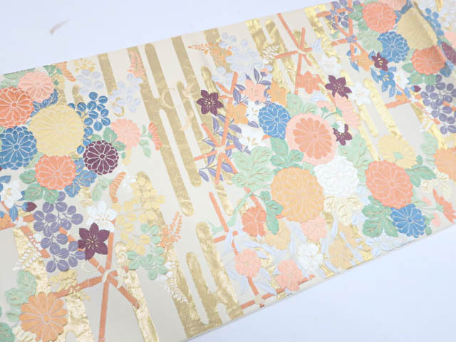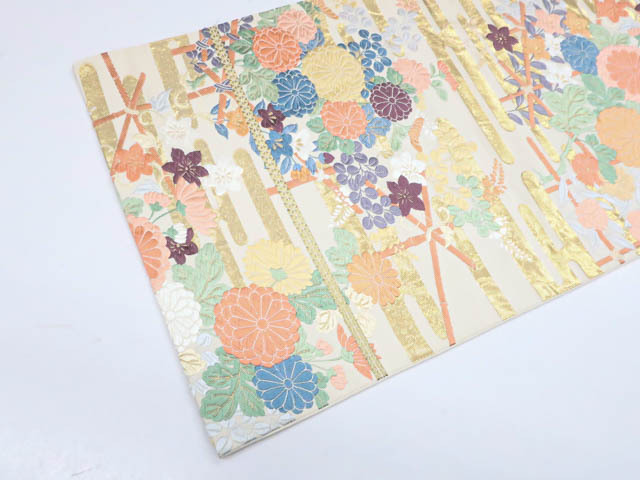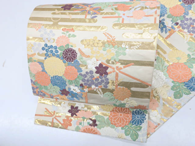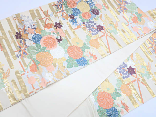 リサイクル商品の為、着用じわがございます。 無地場薄汚れがございますがご着用いただけると存じます。 地色は生成です。 1枚目の画像が近いお色かと思われます。 素材は正絹です。 |