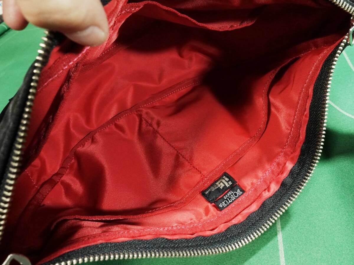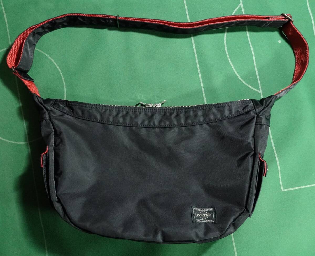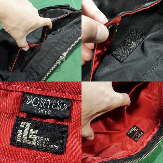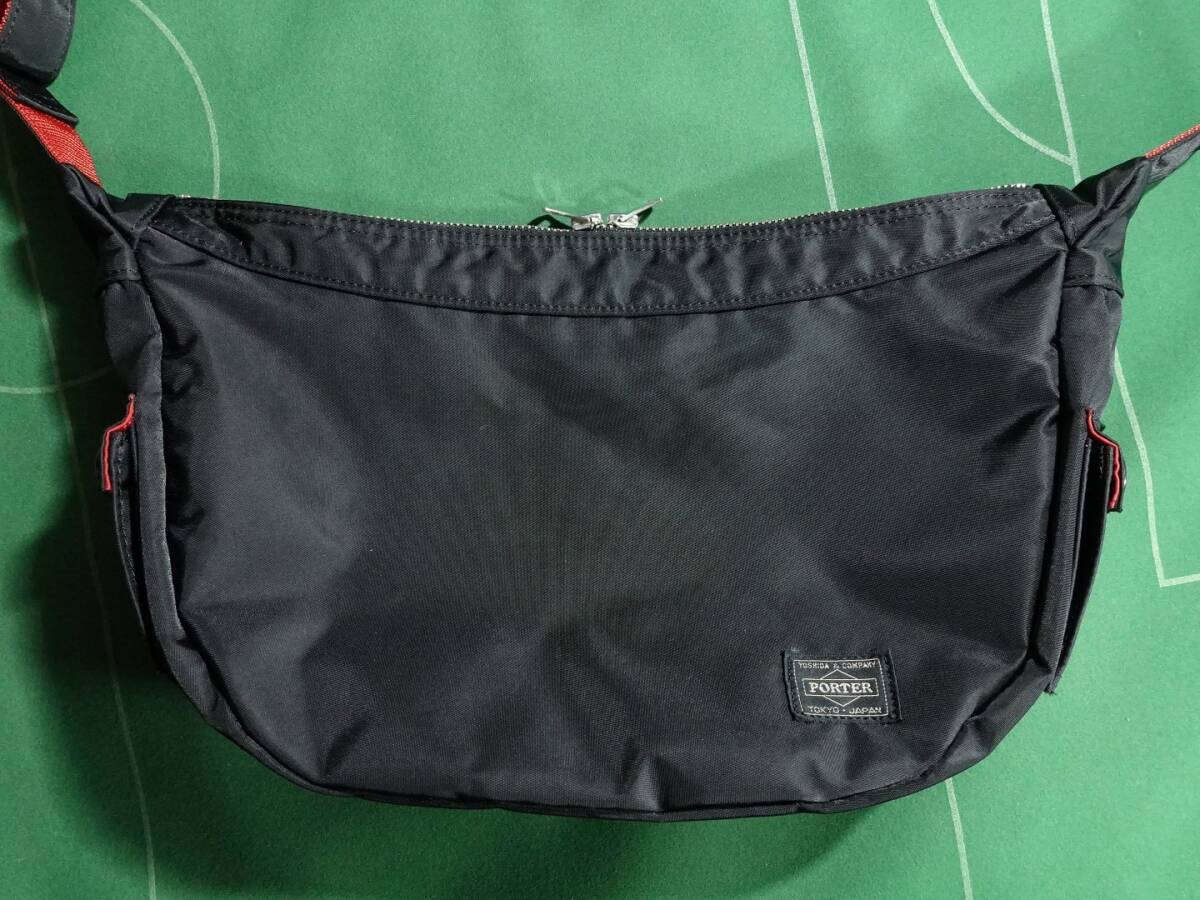 □ポーター ILS エルファイン 共同企画 ナイロンツイル素材 バナナ型 ショルダーバッグ ブラック/レッド 美品!!!□