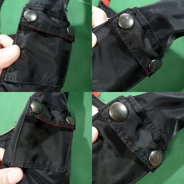 両サイドにはメタルホック留めの小型ポケットが1つずつ。