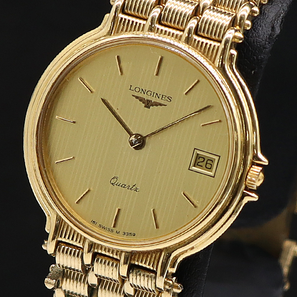 1円 稼働 ロンジン QZ ゴールド文字盤 フラグシップ 161.3359 メンズ腕時計 0045100 10DKT KMR