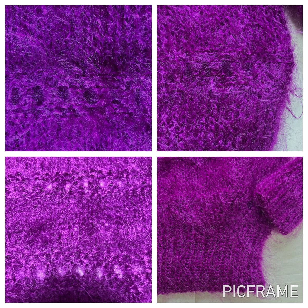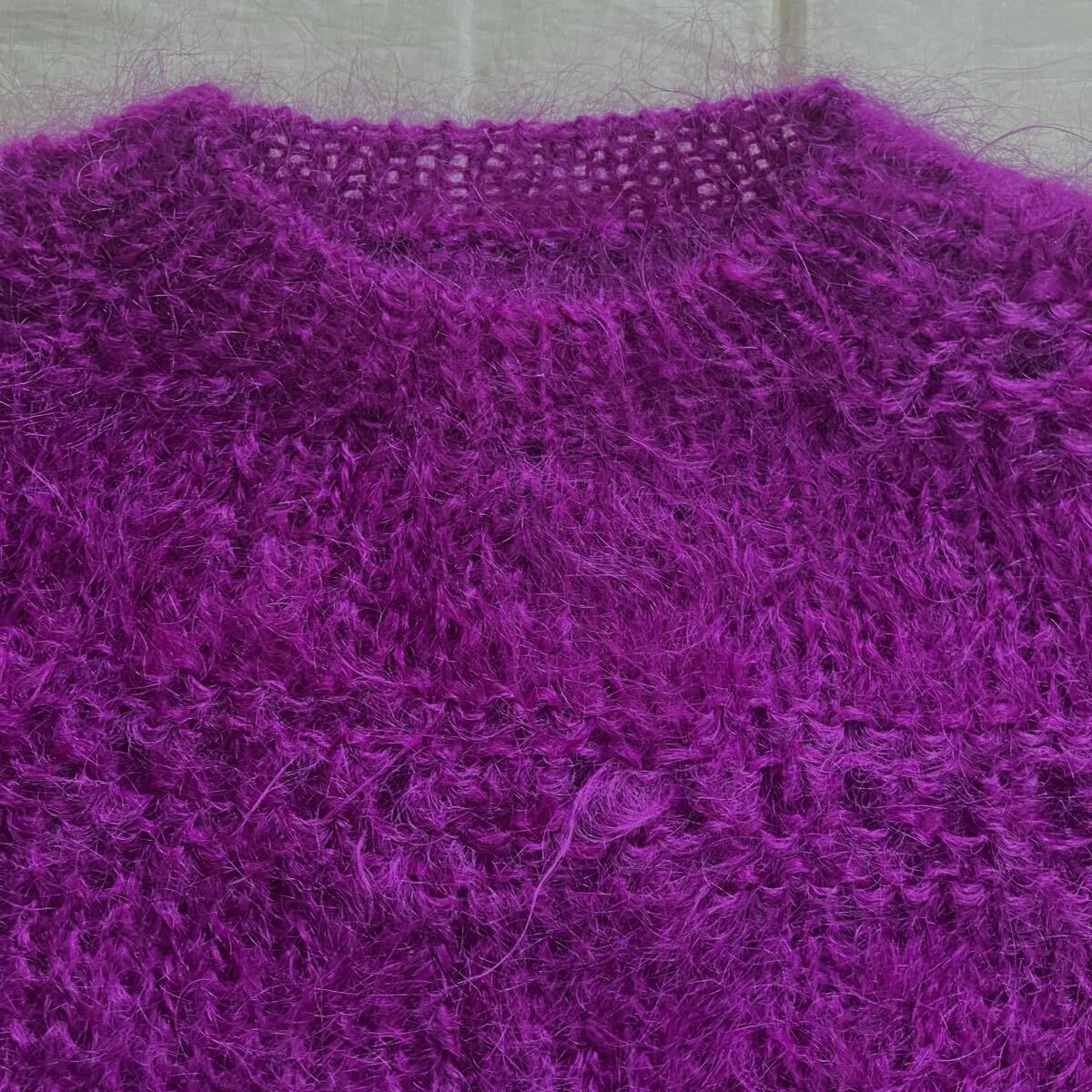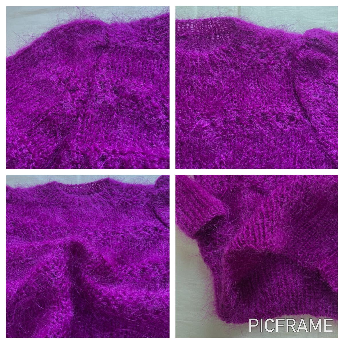 手編み・棒針編み、モヘア毛糸での、レディスセーターです。
