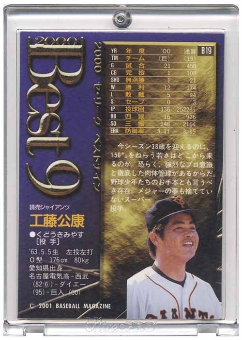 即決! 2001 BBM Best 9 #B19 工藤 公康 挿入 3D カード