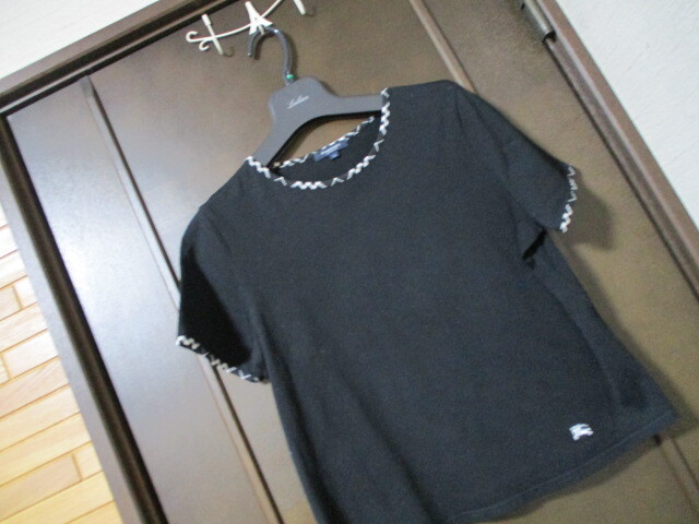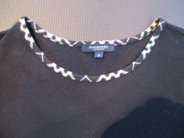 美品♪ BURBERRY LONDON*バーバリー ロンドン  Tシャツ★カットソー☆黒☆フチ回りチェック 大きいサイズ 13/LL 送料185 ②
