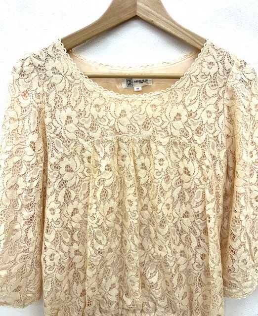 MICHEL KLEIN ミッシェルクラン 総レース チュニック ブラウス フレアスリーブ 七分丈 FKKGD-98078 38サイズ オフィス フォーマル |