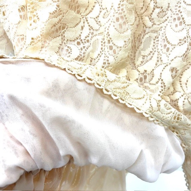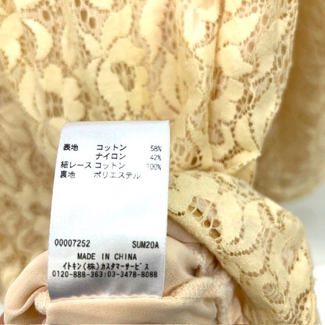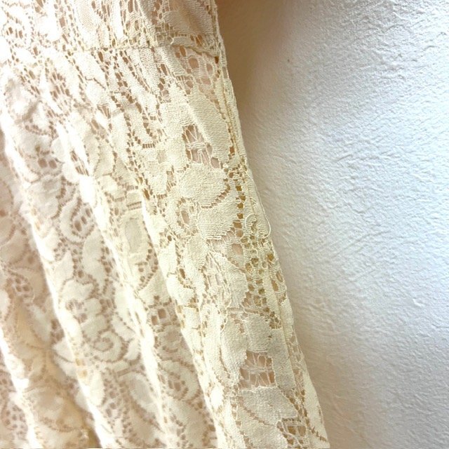 商品説明 コーデに取り入れるだけで、華やかさと女性らしさを演出できる「レースブラウス」 一枚でエレガントに決まるデザインです。 詳細 ●サイズ:身幅43cm、肩幅36cm、着丈67cm、袖丈40cm(平置き採寸) ●素 材:裏地コットン58%、ナイロン42% 細レースコットン100% 裏地ポリエステル ●ランク:Cランク ●コンディション:脇の下付近に若干の糸のほつれがあります。 |