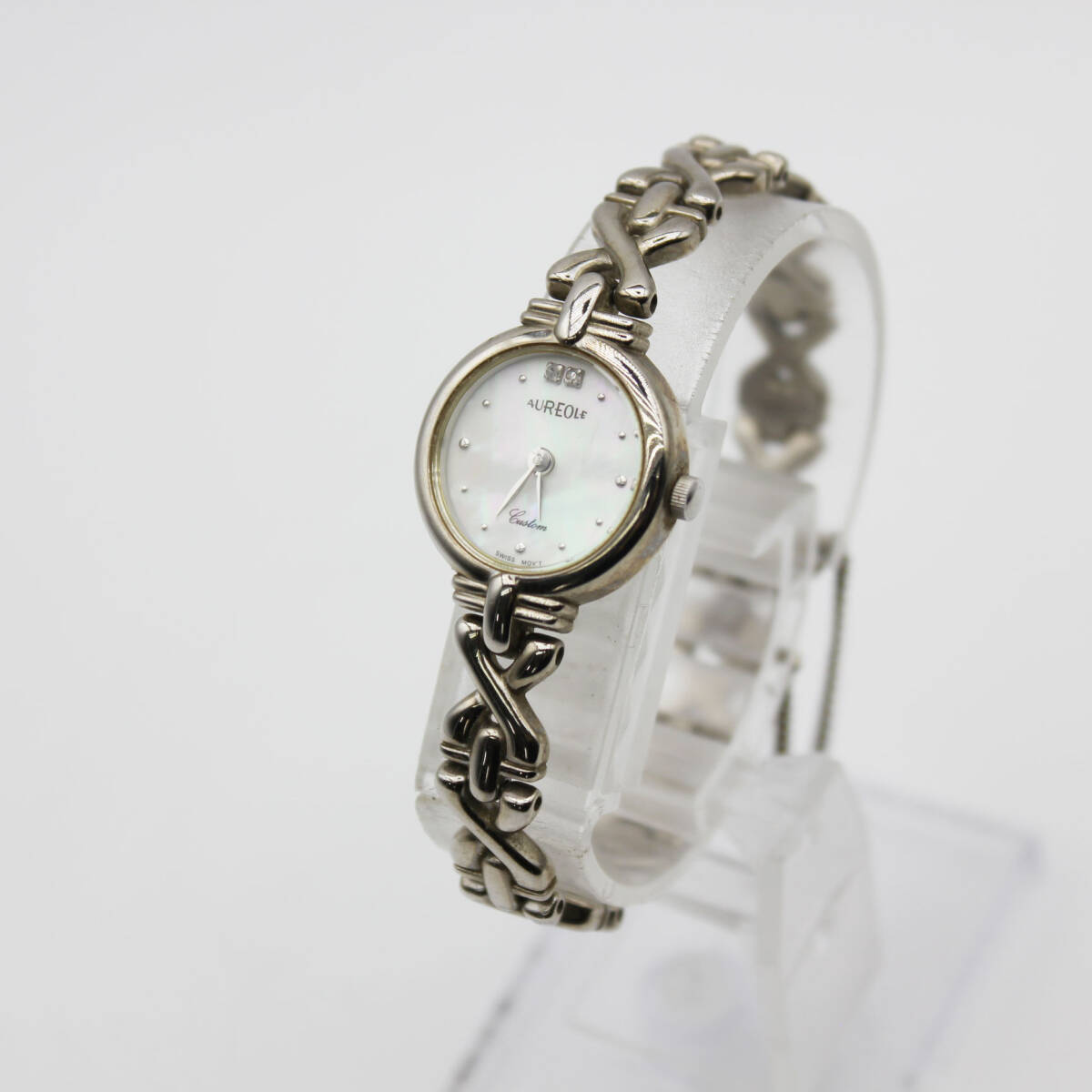 W251009-51 AUREOLE custom オレオール SW-603L レディース腕時計 クォーツ ジャンク 文字盤シェル ラウンド ブレスレット