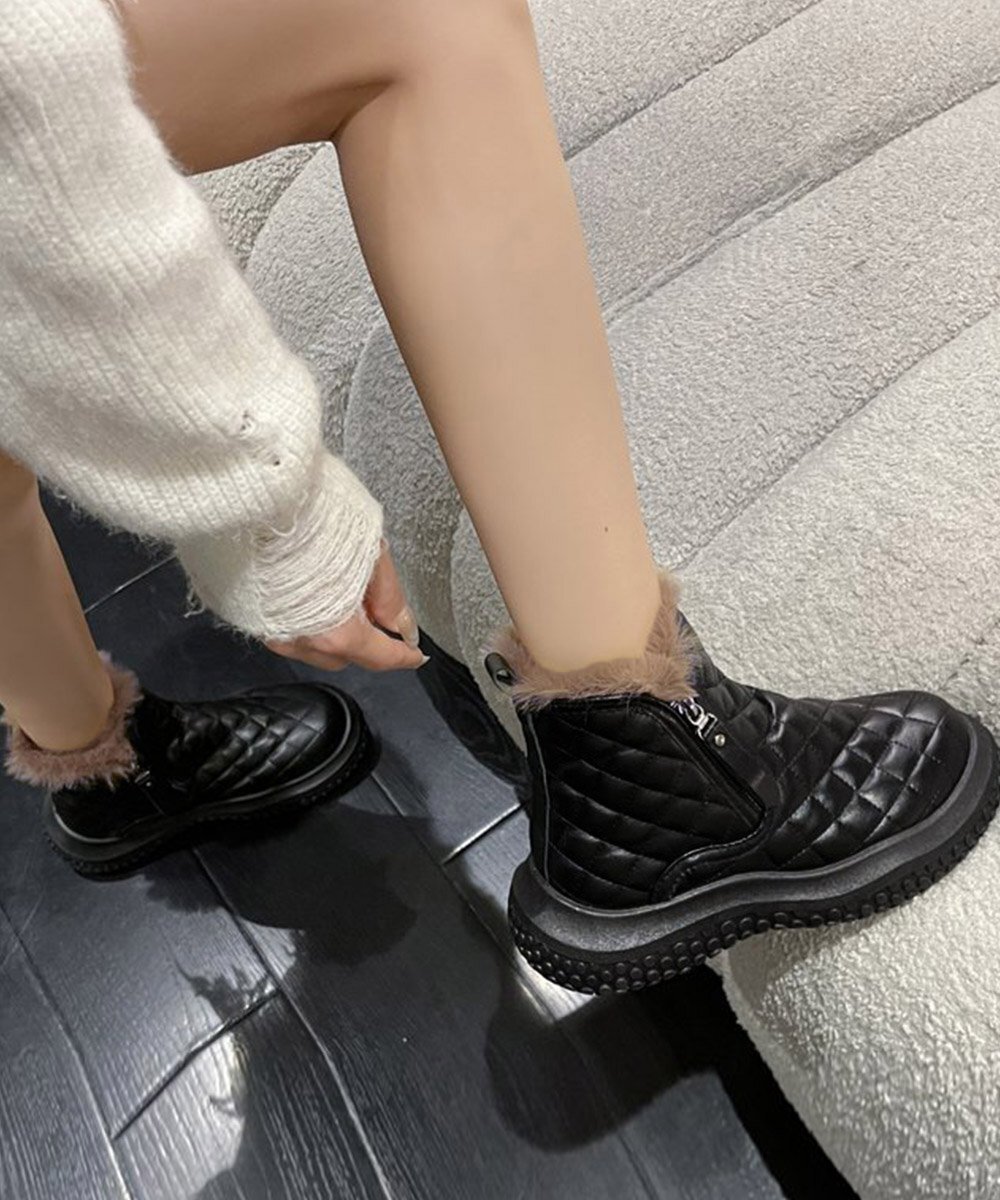 表にはキルティングのデザインが施され、更に季節感を演出してくれるムートンブーツ