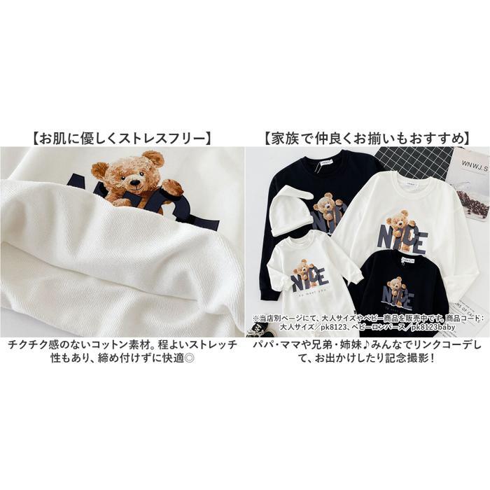 | 商品説明 | ・・【可愛く着こなせるアイテム】 ・シンプルコーデに愛らしさをプラス☆男の子も女の子も着用できる、キッズ用トレーナー! ・【ナチュラルなクマさんデザイン】 ・ベーシックカラーに、クマさんの絵柄をプリント。にっこり愛らしい姿に癒やされる♪ ・【ロングシーズン使える万能タイプ】 ・薄手生地で着心地も軽やか。季節の変わり目には1枚で、寒くなったらレイヤードなどアレンジ。 ・【お肌に優しくストレスフリー】 ・チクチク感のないコットン素材。程よいストレッチ性もあり、締め付けずに快適◎ ・【家族で仲良くお揃いもおすすめ】 ・パパ・ママや兄弟・姉妹♪みんなでリンクコーデして、お出かけしたり記念撮影! ・(※)当店別ページにて、大人サイズやベビー商品を販売中です。商品コード:大人サイズ/pk8123、ベビーロンパース/pk8123baby |