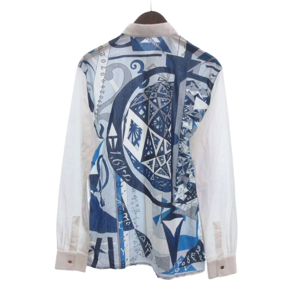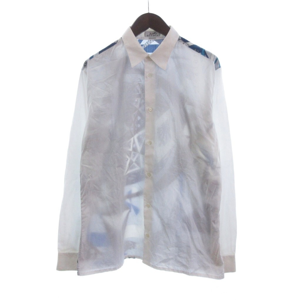 エルメス HERMES シャツ 長袖 スカーフ柄 コットン 青 白 ブルー ホワイト 41 メンズ