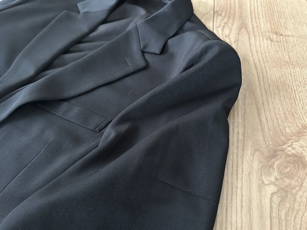 適度にフィットしたシルエットのシングルテーラードジャケットです。