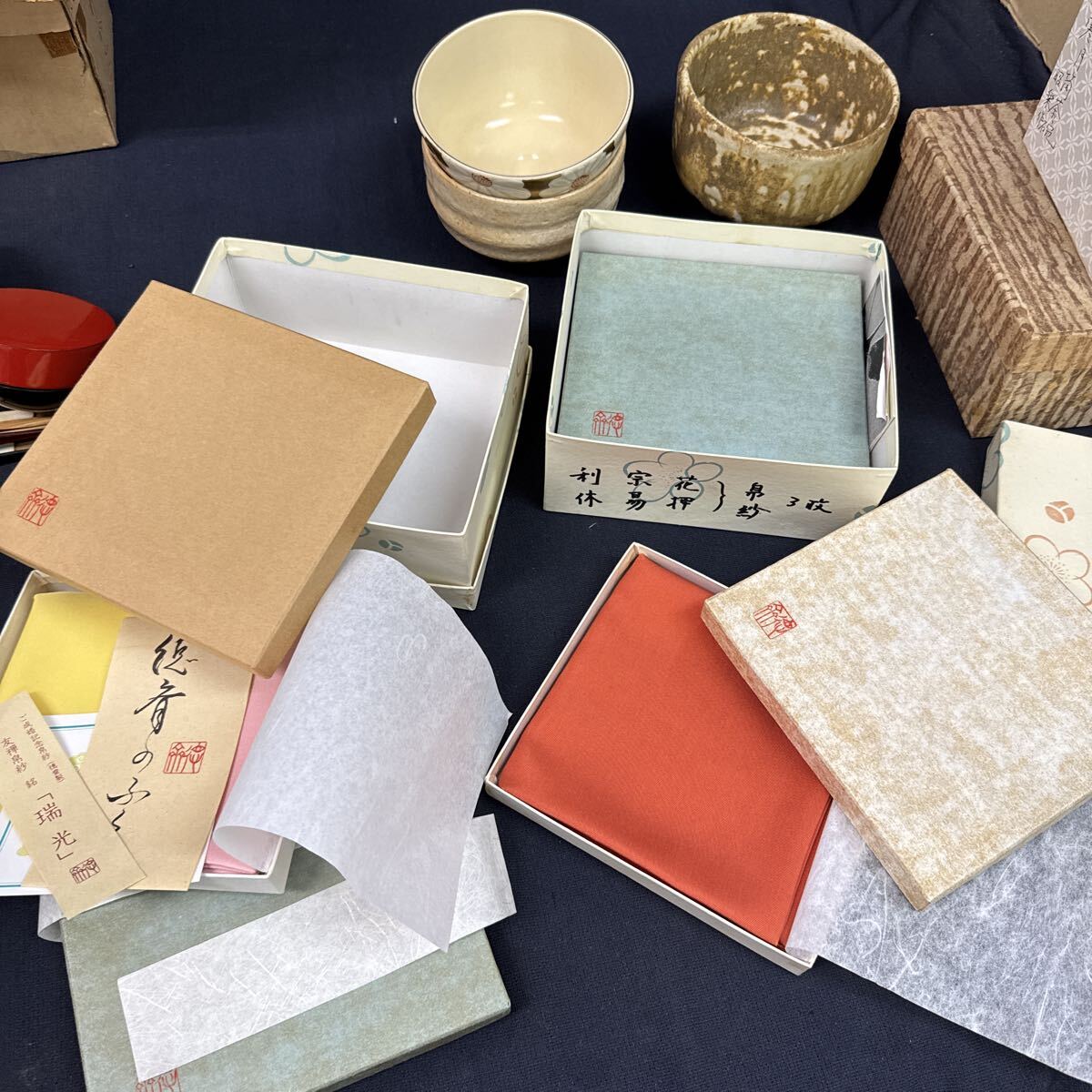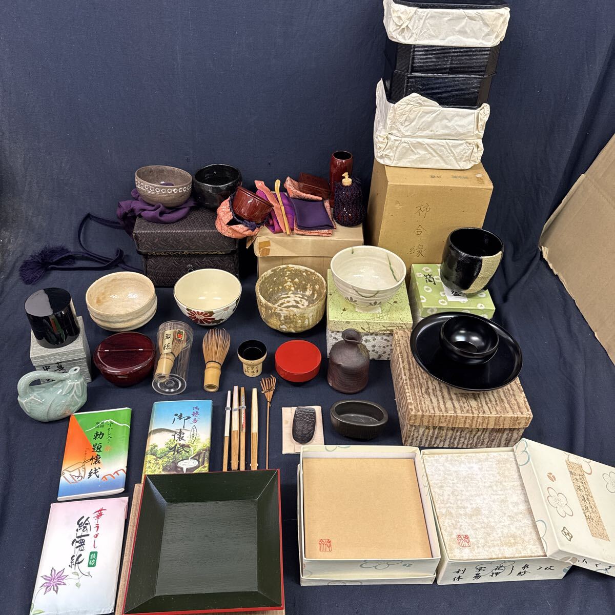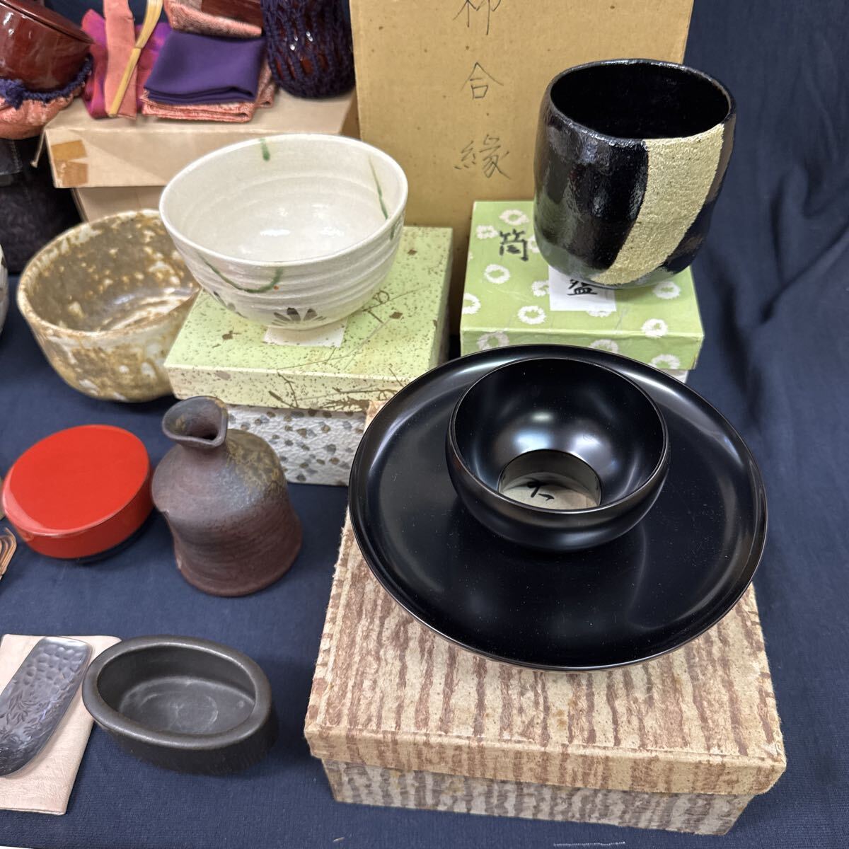 ◆茶道具 大量まとめ売り 茶碗 茶盆 茶入 中次 茶杓 花入 懐紙 棗 扇子 天目台 帛紗 四方盆 柿台 縁高重 竹篭 伝統工芸 煎茶道具 273-81