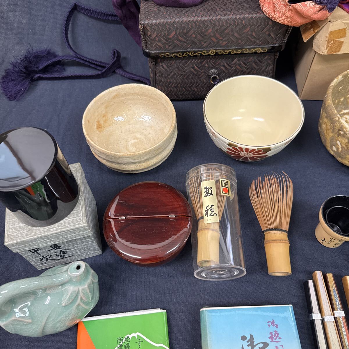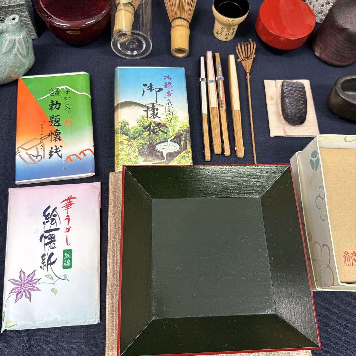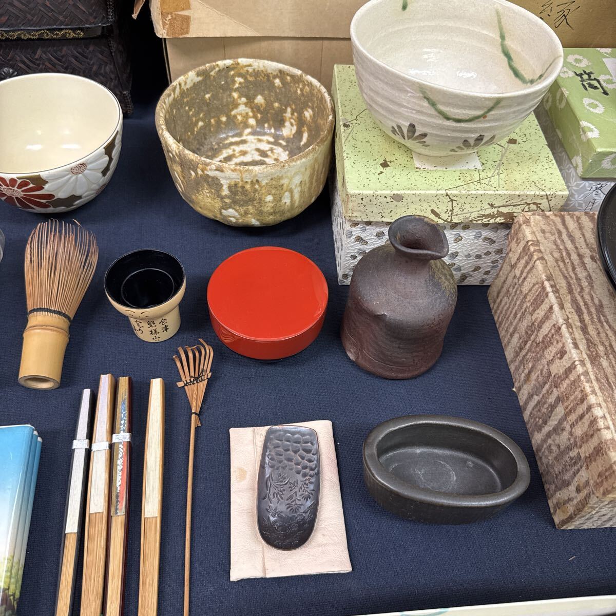 ◆茶道具 大量まとめ売り 茶碗 茶盆 茶入 中次 茶杓 花入 懐紙 棗 扇子 天目台 帛紗 四方盆 柿台 縁高重 竹篭 伝統工芸 煎茶道具 273-81