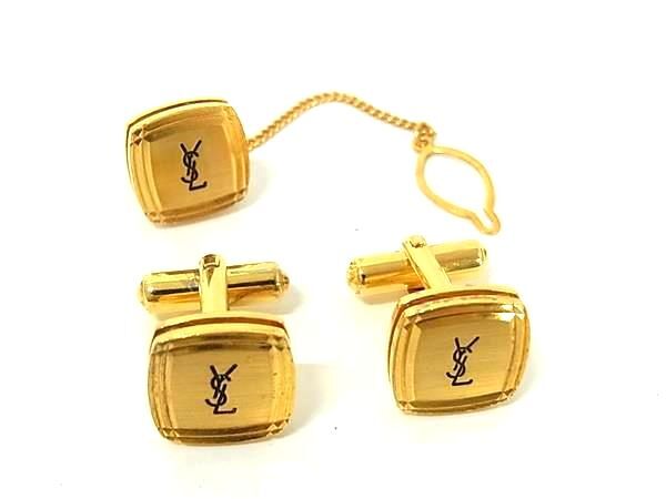 ■美品■ YVESSAINTLAURENT イヴサンローラン カフリンクス カフスボタン タイタック アクセサリー 2点セット ゴールド系 DJ5602